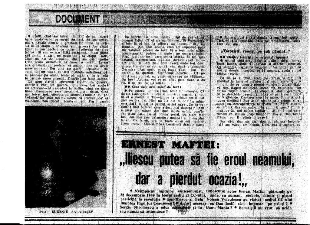 Ernest Maftei (martor ocular in CC-ul, decembrie 1989): “Nu te lua cu el (Dan Iosif)!…nu-i voie sa zica, fiindca nu vrea sa se afle, nu-i voie din cauza ca acu’ ne conduce Securitatea…Asculta ce spun! Ca USLA, coloana a 5-a a fost cu Ceausescu!” » image-17