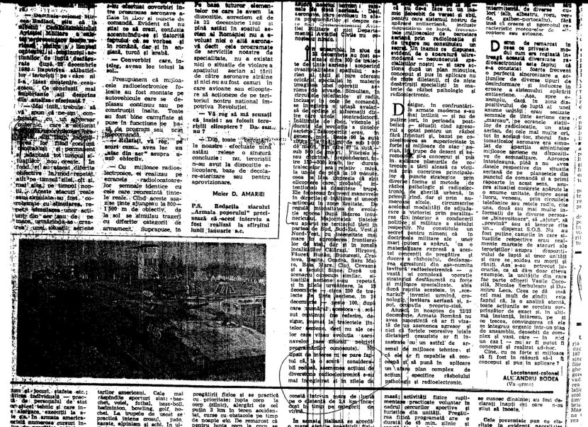 Several days before the outbreak of the December events, the commander of the USLA forces—col. ARDELEANU GHEORGHE (his real name being BULA MOISE)—left for Iran, bringing with him a great many gifts; and a car’s load of maps, bags, pens, sacks, etc. What did Col. Ardeleanu need these for in Iran? What was the use of having the head of the USLA go? What did he negotiate with the Iranians before the arrival of Ceausescu [18-19 December]? Could he have contracted the bringing into the country of some shock troops, as they are called, to enforce the guard at the House of the Republic, the civic Center and the principal residences of the dictator? If not for that reason, why? Because it is known what followed…