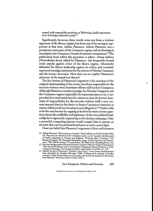 The Uses of Absurdity: The Staged War Theory and the Romanian Revolution of December 1989 (Part I, pp. 501-511, 1999) by Richard Andrew Hall » Top-164