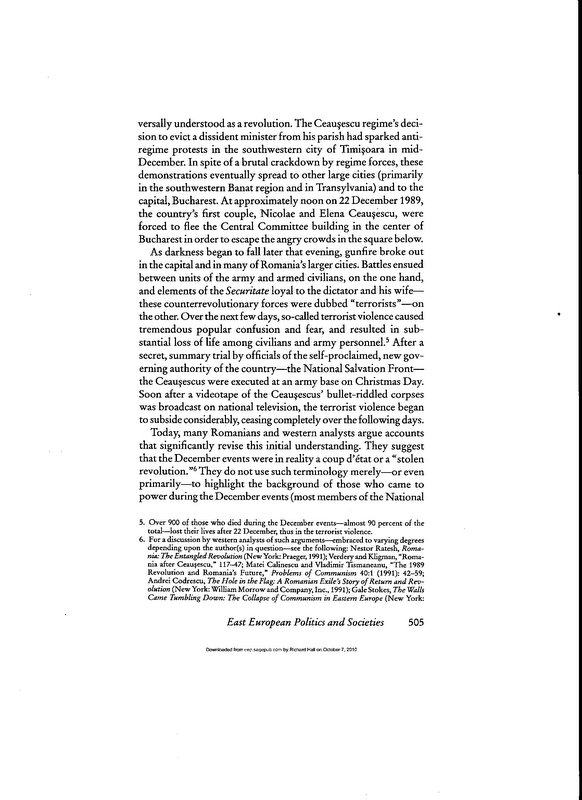 The Uses of Absurdity: The Staged War Theory and the Romanian Revolution of December 1989 (Part II, pp. 511-520, 1999) by Richard Andrew Hall » Top-201