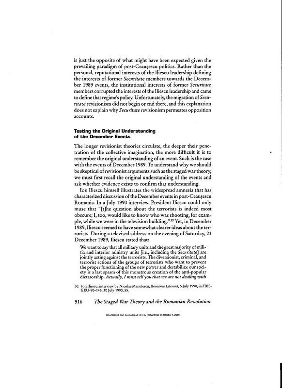 The Uses of Absurdity: The Staged War Theory and the Romanian Revolution of December 1989 (Part II, pp. 511-520, 1999) by Richard Andrew Hall » Top-214