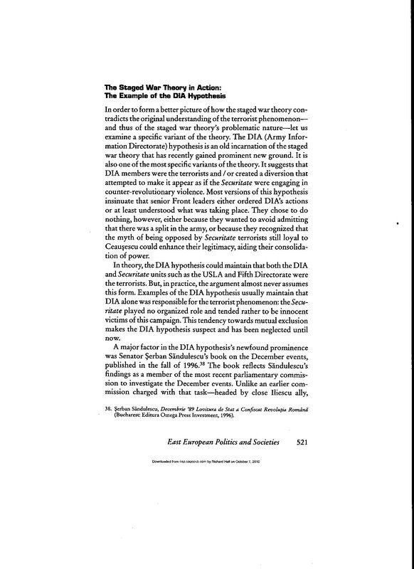The Uses of Absurdity: The Staged War Theory and the Romanian Revolution of December 1989 (Part III, pp. 521-530, 1999) by Richard Andrew Hall » Top-29