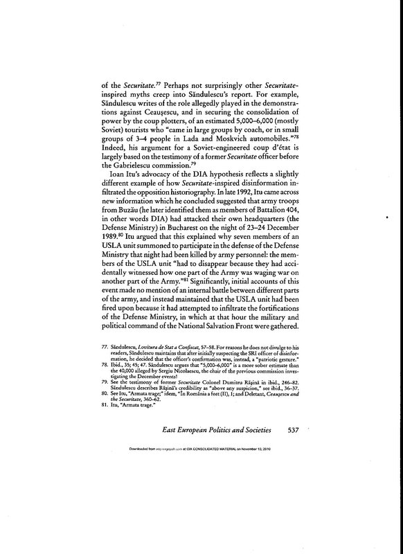 The Uses of Absurdity: The Staged War Theory and the Romanian Revolution of December 1989 (Part IV, pp. 530-542, 1999) by Richard Andrew Hall » Top-1