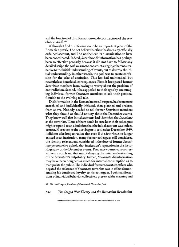The Uses of Absurdity: The Staged War Theory and the Romanian Revolution of December 1989 (Part IV, pp. 530-542, 1999) by Richard Andrew Hall » Top-2