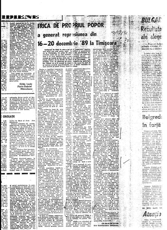 “Pe 7-8 sau 9 decembrie a venit de la Bucuresti [la Iasi] generalul Olteanu cu o garnitura de tren plina cu trupa. I-au cazat pe la ‘Unirea’, ‘Traian’ si ‘Moldova’…” v. “Incepand cu data de 9 decembrie 1989, numarul ‘turistilor’ sovietici in autoturisme ‘particulare’…” » Top-2
