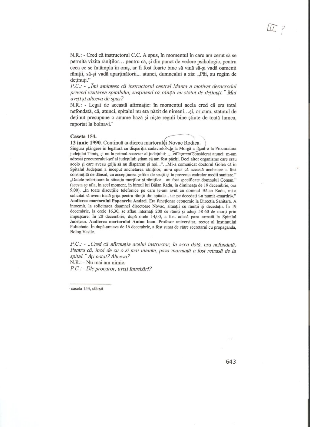 Procesul de la Timisoara (III): Audierea martorului Rodica Novac, directorul Direcţiei Sanitare Timiş (13 iunie 1990) » image0
