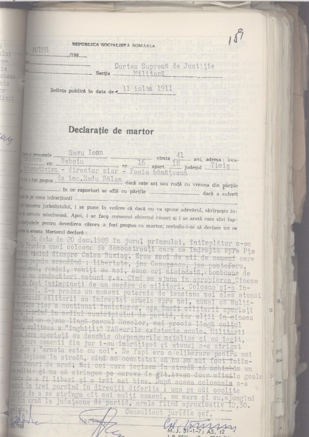 Dosarele Revolutiei de la Timisoara: Tudor Postelnicu “Unii militari de la trupele de securitate ale brigazii Timisoara au facut unele provocari la unele magazine si vitrine spargind geamurile sa imprastie participantii…” (17.III.1990) » 0280