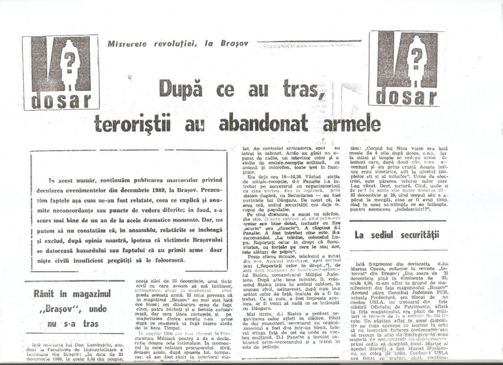 “Misterele revolutiei, la Brasov. Dupa ce au tras, teroristii au abandonat armele.” Adrian Socaciu, nr. 4 ianuarie 1991 » image0-001