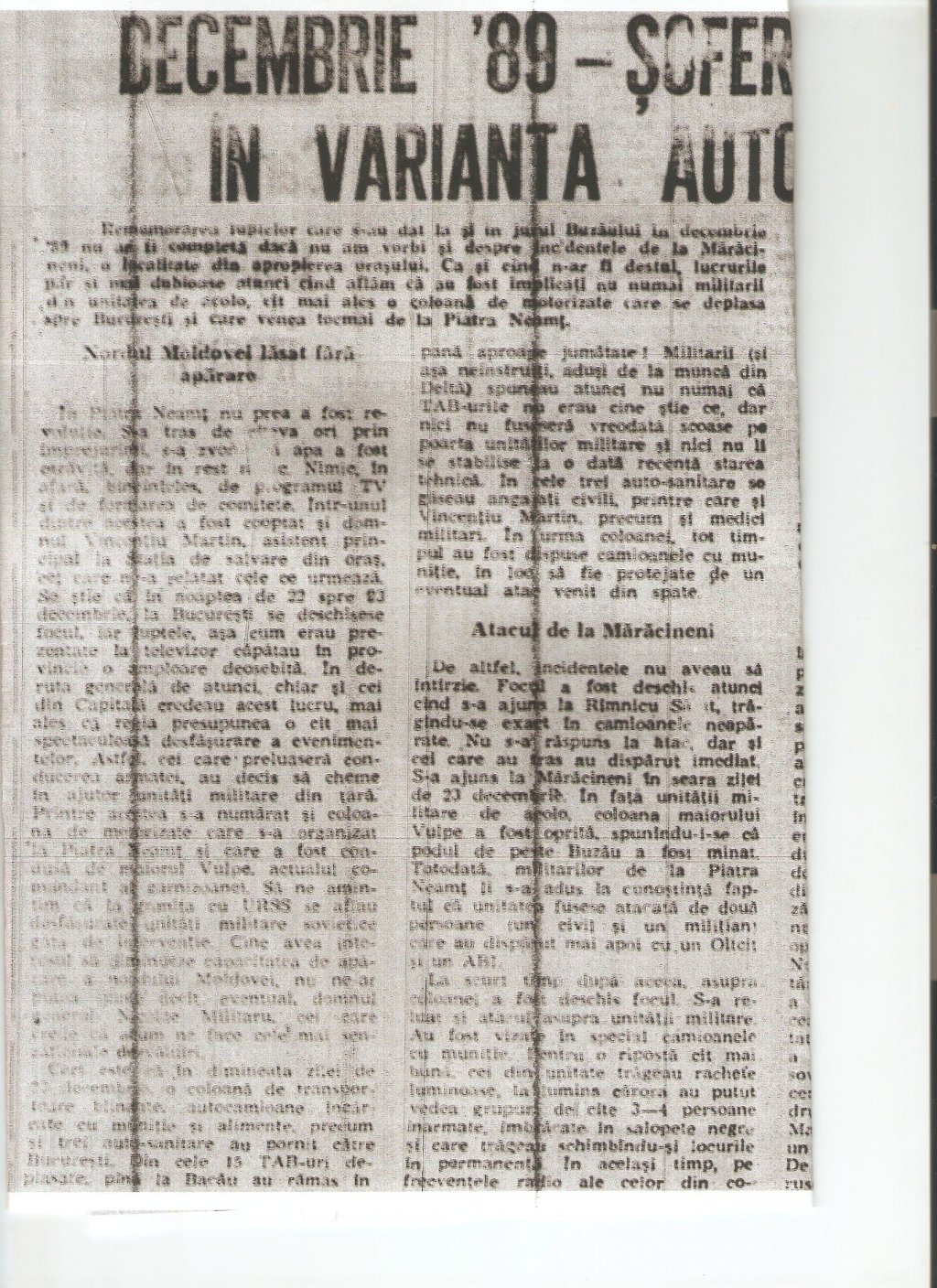 Maracineni, Securitatea, si Lupta de rezistenta pe teritoriul vremelnic ocupat de inamic: “Decembrie ’89–soferii iadului in varianta autohtona” (Expres, 19-25 ianuarie 1993) » image0