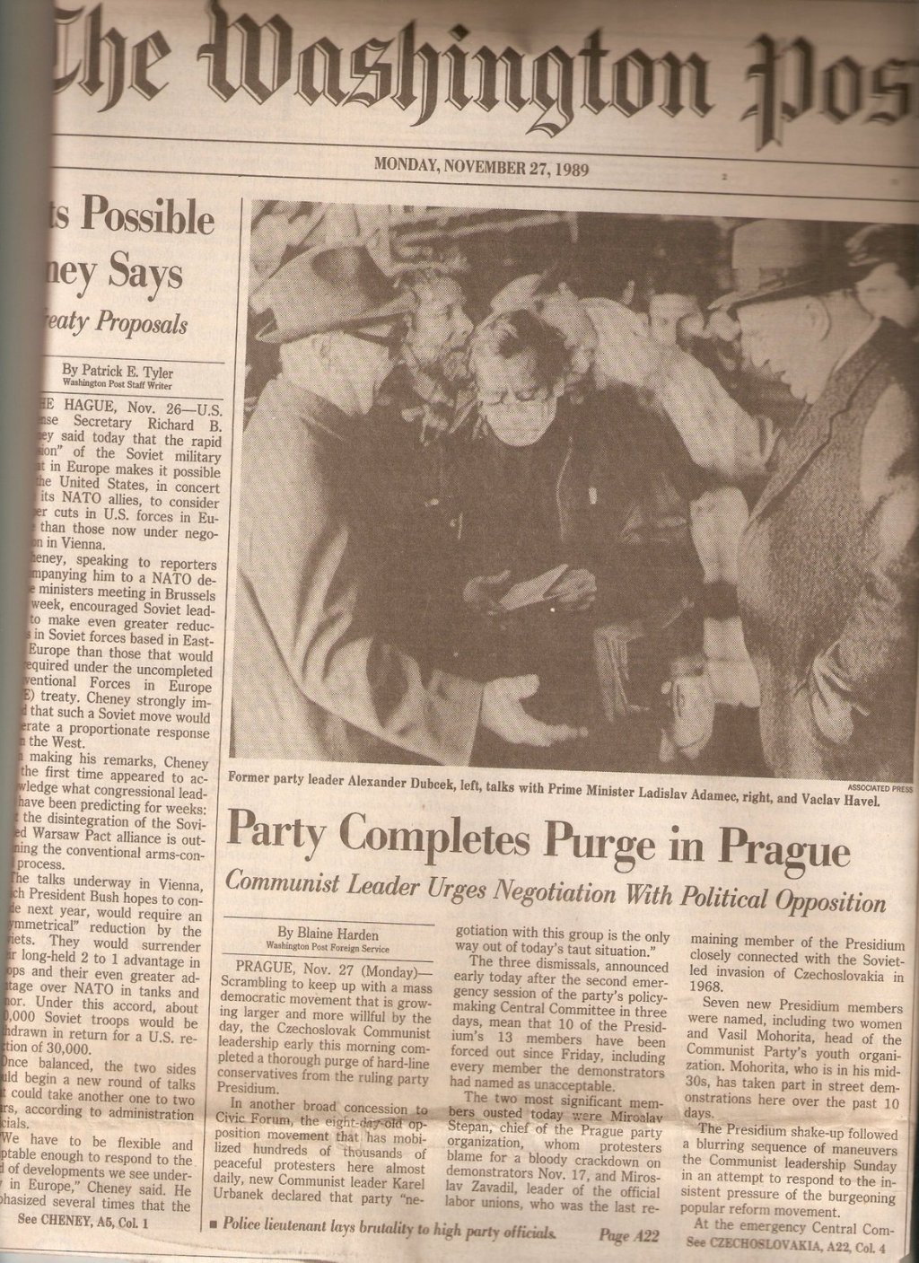 Washington Post and New York Times Headlines from Czechoslovakia’s Velvet Revolution » image0-007