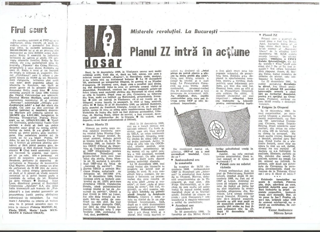 Misterele revolutiei. La Bucuresti. Planul ZZ intra in actiune si Cazul Medias–istoria unui securist care a antrenat teroristi palestinieni in Romania. Colonelul Iana a disparut fara urma. (revista Cuvintul) » image0-001