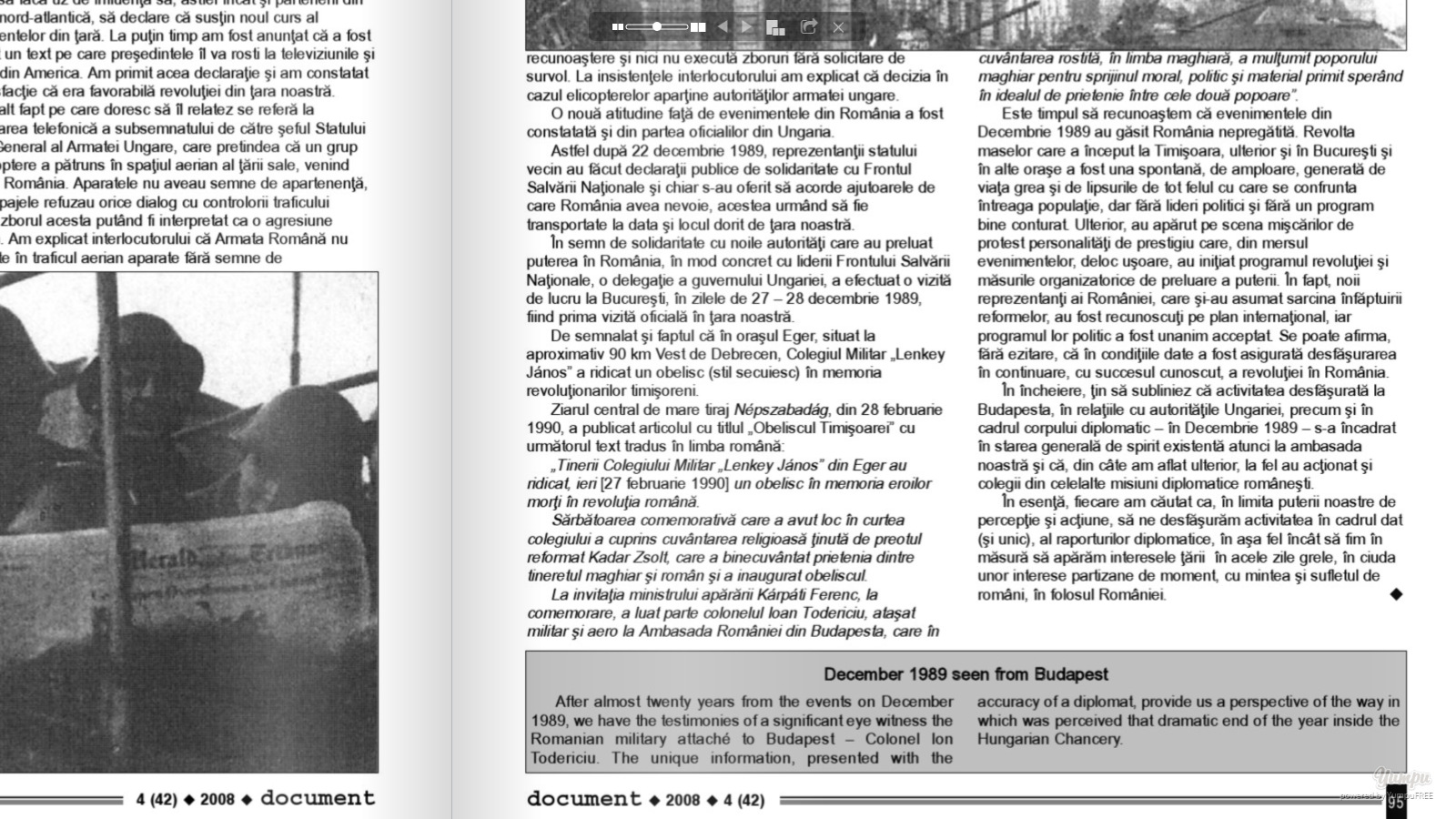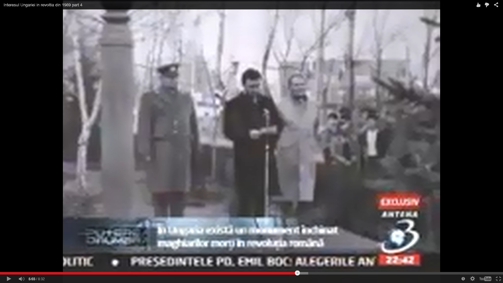 From approx. minute 4 Todericiu discusses the Eger monument and that it was dedicated to the Romanian people of Timisoara; despite the obstinacy of the reporter–including what may be a clip from the 1993 program invoked by Watts–Toderciu confirms that there are no documents which would testify to an organized Hungarian role in the December 1989 events in Romanian.