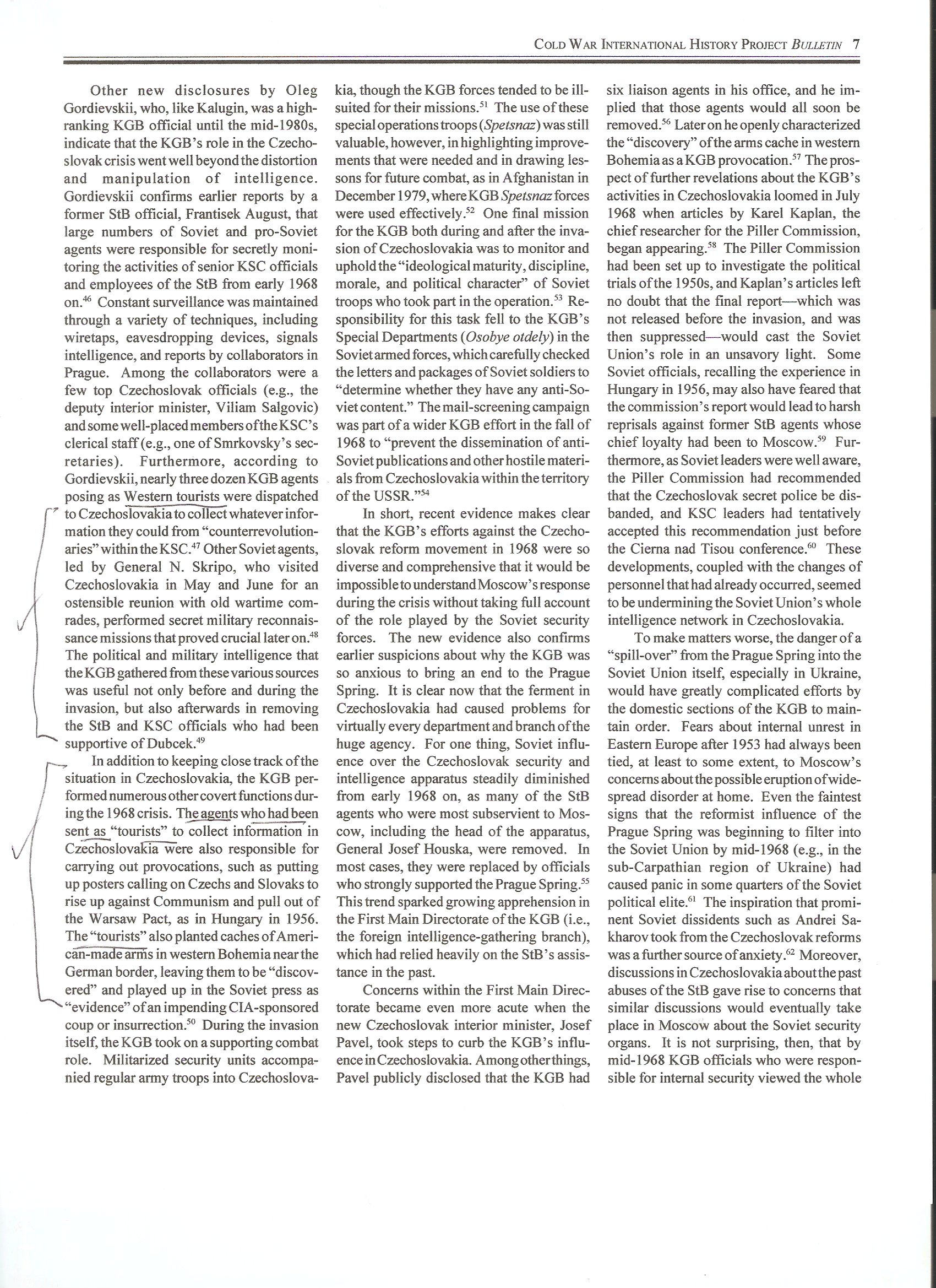 The KGB, the Soviet military and the loyalist bloc member services all sent clandestine operatives under cover of “tourists” into Czechoslovakia in 1968. Different sorts of “tourists” fulfilled different missions. Some were responsible for the commando operations that established a bridgehead by taking over Ruzyne airport in Prague. Some provided reconnaissance of transportation and invasion routes. Some established clandestine command networks to takeover control of both the soon-to-arrive invasion forces as well as the Czechoslovak armed forces. Some provoked opposition members and demonstrators into actions that could be used to justify the invasion. And some simply gathered intelligence on the unfolding events and their various players. (See L. Grigorescu and C. Moraru, “Trupe în Aproprierea Frontieri şi Turişti în Interior” [Troops Near the Frontier and Tourists Inside], Magazin istoric 32, no. 7 (1998): 29; M. Retegan, In the Shadow of the Prague Spring (2000): 93-100; C. Troncota, Duplicitării [The Duplicitous] (2004): 178, 181)