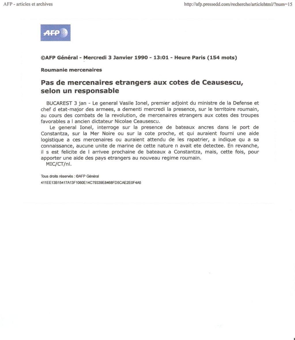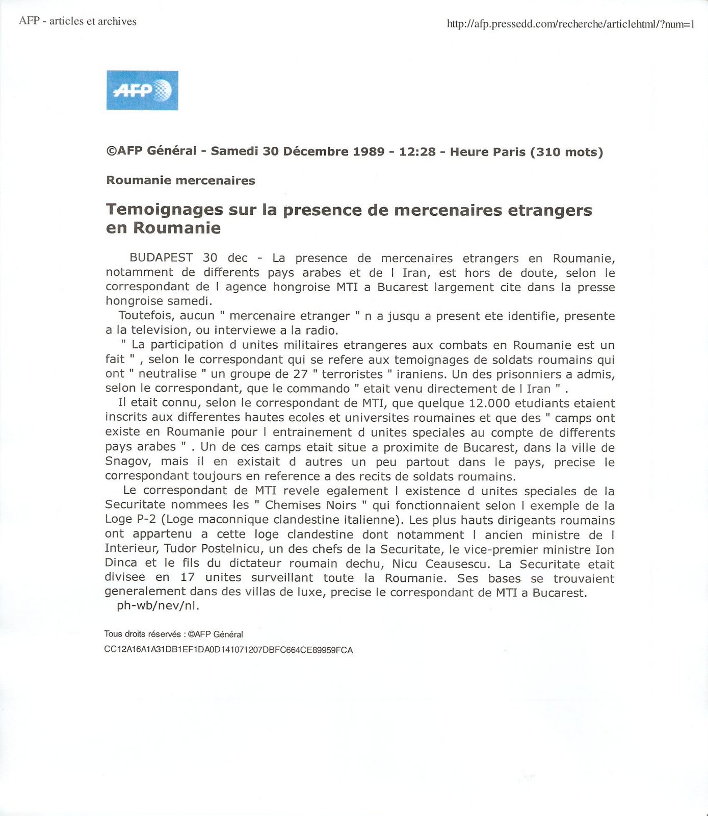 | Temoignages sur la presence de mercenaires etrangers en Roumanie |