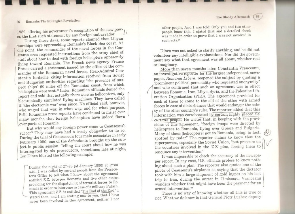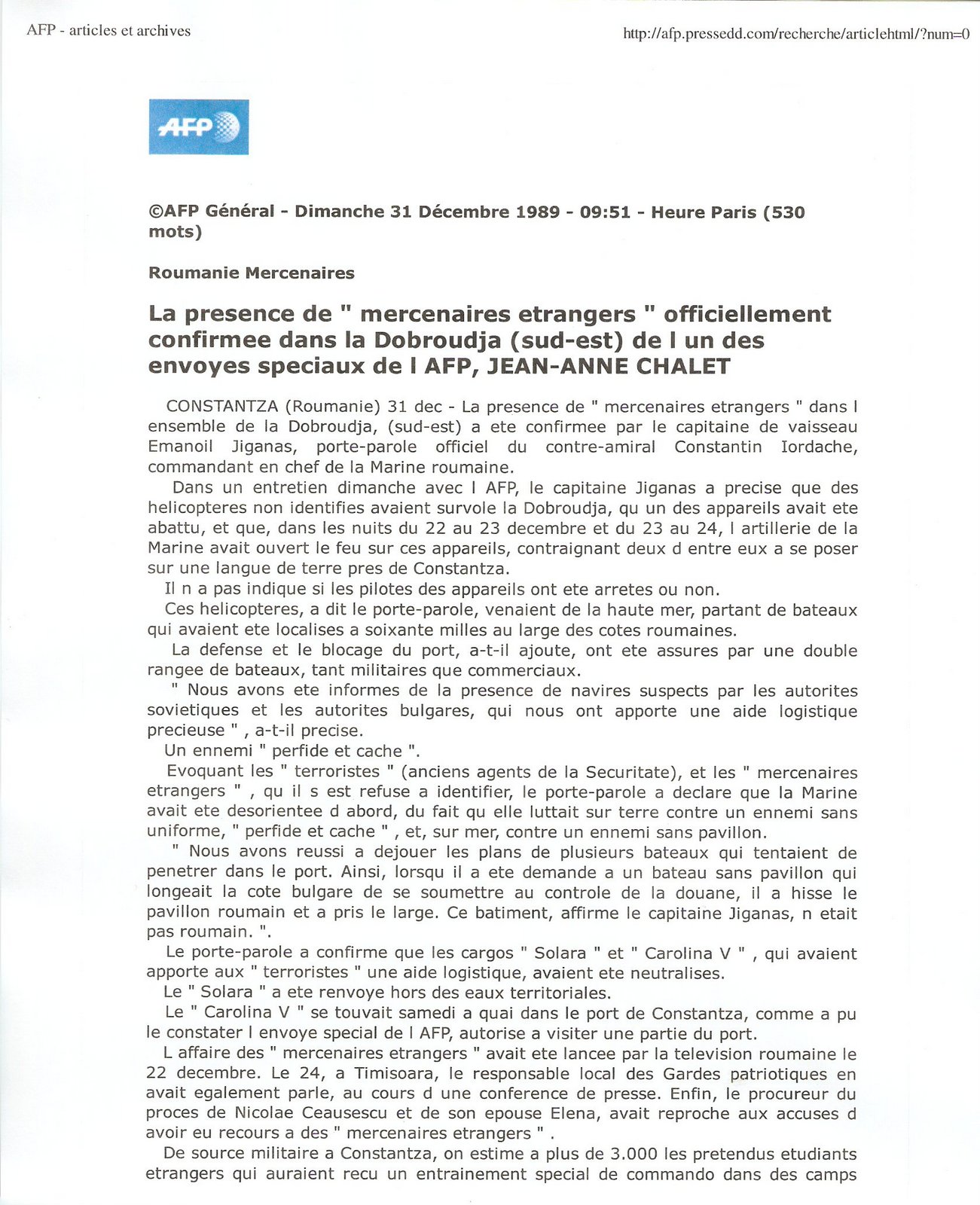 Anatomy of a Cover-up (or Constanta, we have a problem…): In the waning days of December 1989 following the execution of Nicolae and Elena Ceausescu on Christmas Day, several high-ranking officials from Romania’s military and commercial navy stationed in and around Constanta recounted to foreign reporters details of what had happened off the Black Sea Coast during the previous week and a half…That they spoke out of turn and were entirely too honest could be surmised by the effort of Bucharest–and those directly charged with the overall governance and defense of the country–to deny the revelations out of Constanta. It was the beginning of the cover-up of the Counter-Revolution of December 1989 and it was done precisely because of the involvement of foreign mercenaries in fighting side by side with elements of the Securitate who opposed the ouster of Nicolae Ceausescu. (So, indeed, the cover-up was initiated by Romania’s new civil and military leaders to avoid international ramifications (the ultimate state function, regardless of regime, in a world of nation-states)…it would be continued by others.)