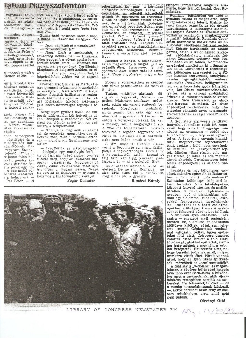 Otto Oltvanyi, “A Securitate,” Nepszabadsag, 30 December 1989 (this is the apparent source of the AFP dispatch citing MTI, above).