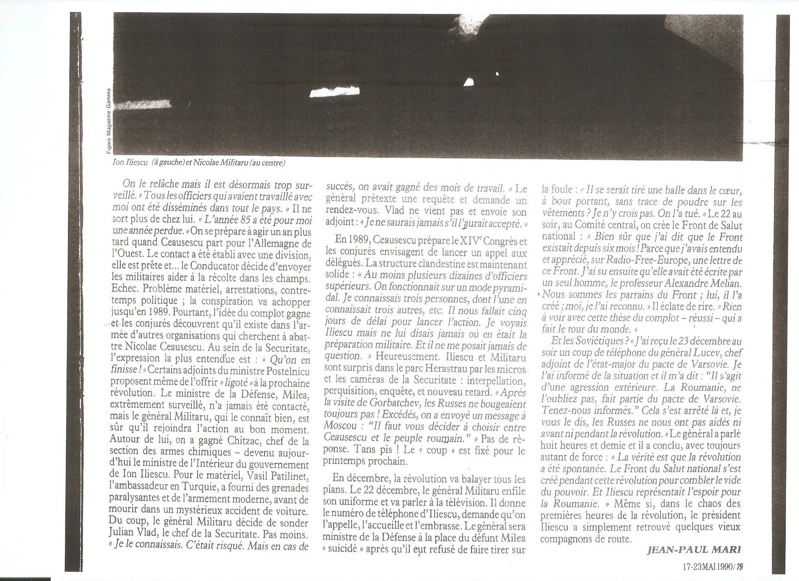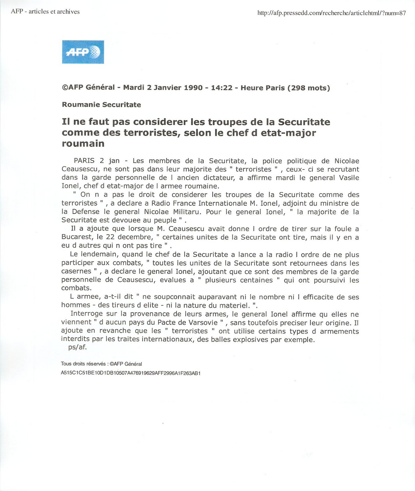 Note: Not everything at this point had “disappeared”: General Vasile Ionel confirmed that the terrorists had used foreign arms (arms not produced in Warsaw Pact countries, as he specified) and that they used munitions outlawed by international conventions, for example exploding DUM-DUM bullets (“balles explosives”).