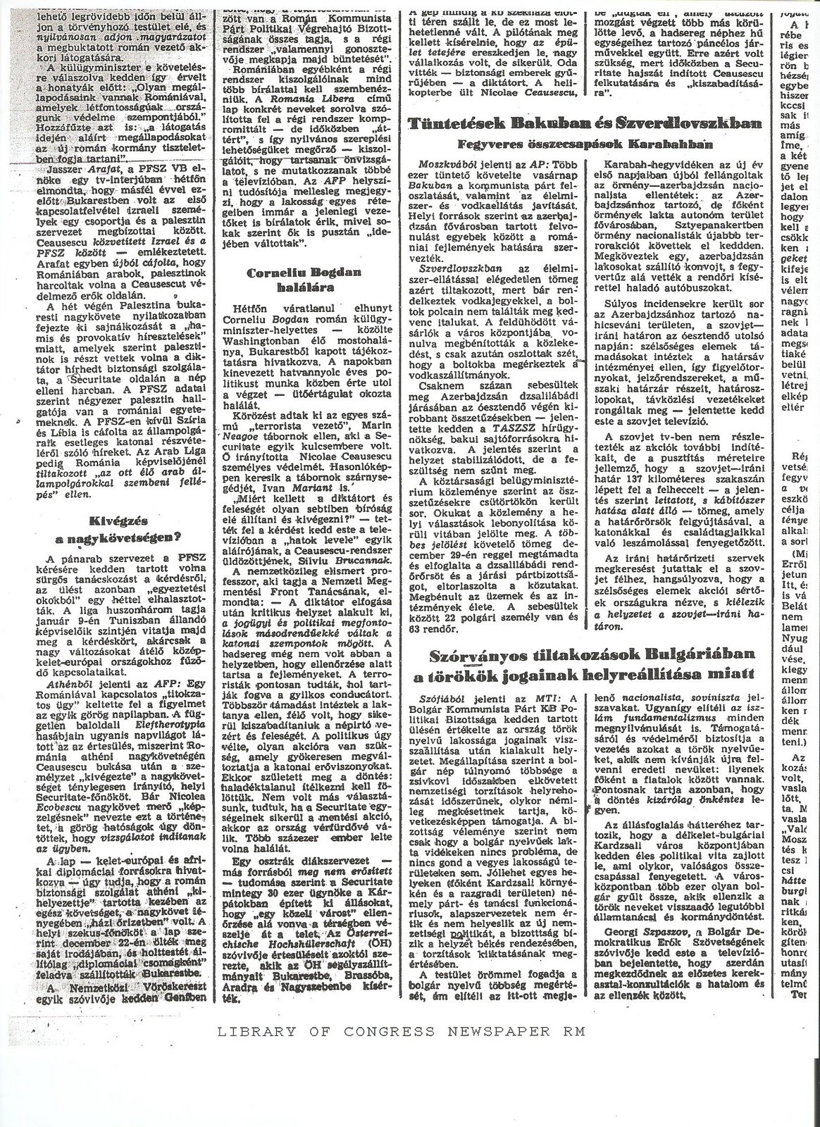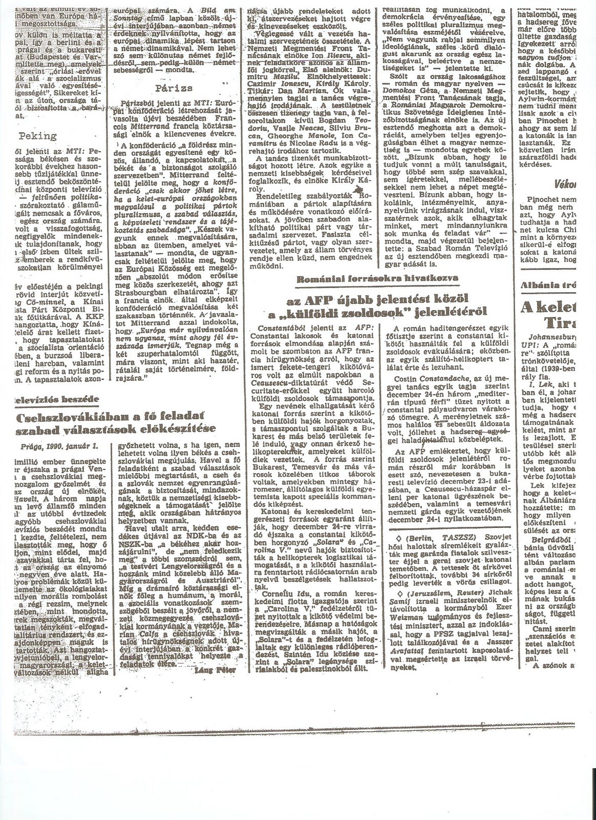 One wonders what would have happened had this series of reports been laid out in sequence and analyzed as a sequence. There seems to have been more coverage of them (abroad) in the Budapest (see below), rather than Bucharest, press. One of the few references in the literature on December 1989 is on page 66 of Nestor Ratesh’s Romania: The Entangled Revolution (1991), where Ratesh notes a (31 December 1989) Agence France Presse dispatch citing the office of naval commander Constantin Iordache on Soviet and Bulgarian information that helicopters were being launched by suspicious ships approximately 60 miles off the coast, as well as a later denial by other Romanian authorities of the existence of these helicopters. As one can see below, the five AFP reports on the subject, from 30 and 31 December 1989, and 2 and 3 January 1990, are far more detailed, diverse, and damning than Ratesh’s allusion would suggest.