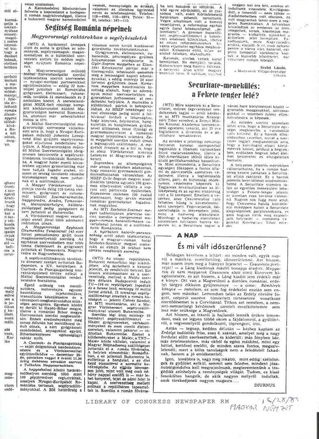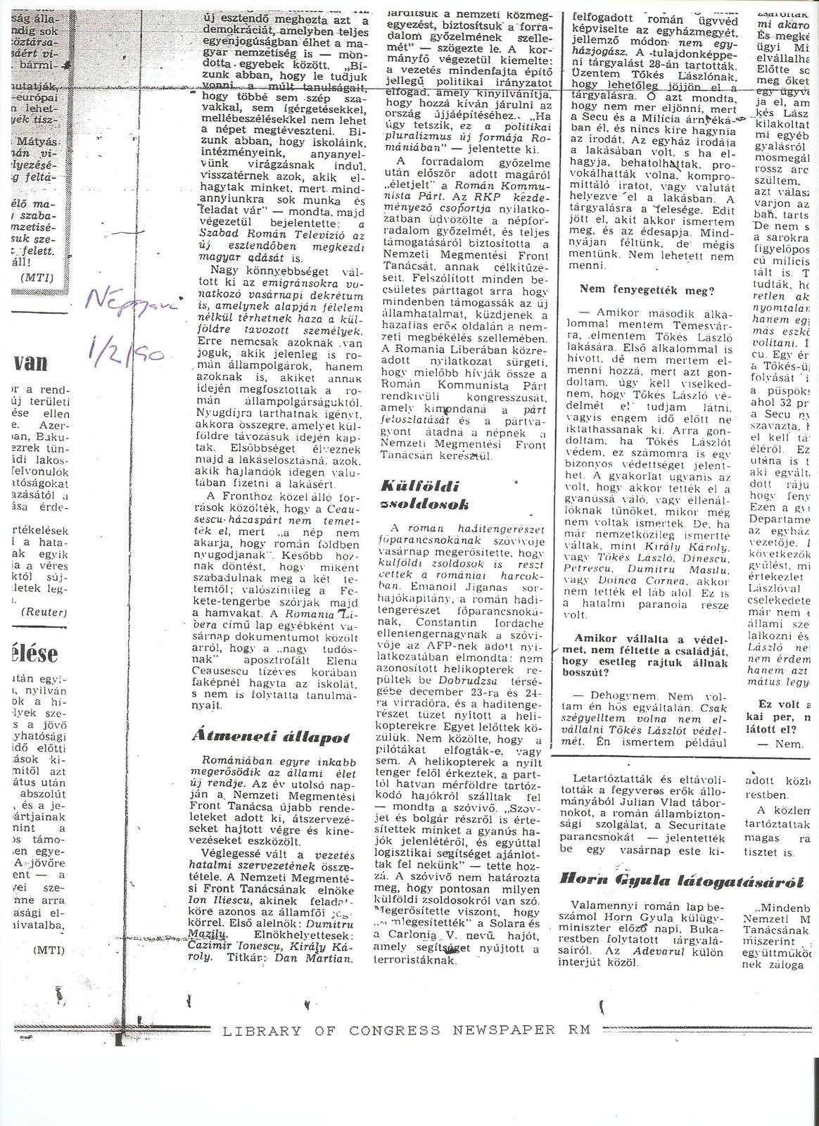 “Securitate-menekules: a Fekete tenger fele?” Magyar Nemzet, 28 December 1989.