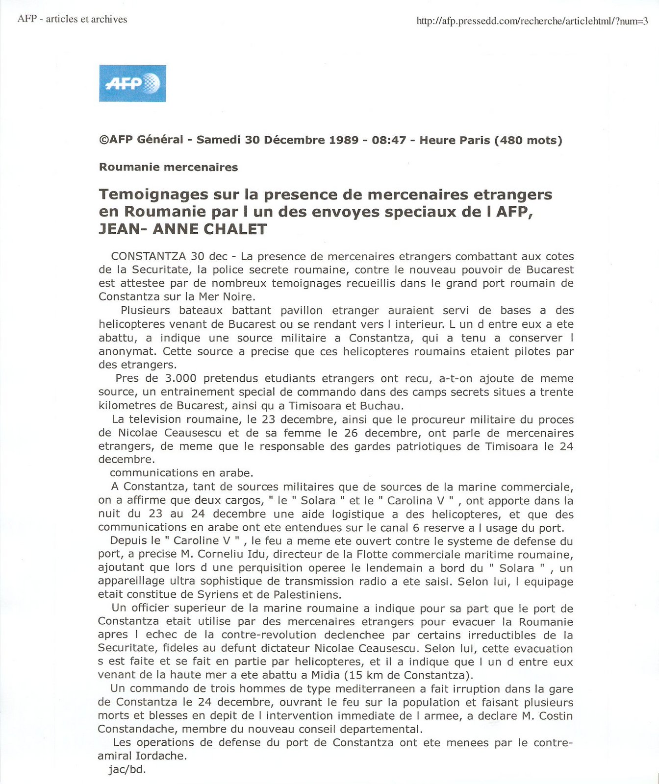 (To my pleasant surprise, I discovered the AFP (Agence France Presse) Archive online. I finally dug into my pocket and purchased for approximately 3 euros an article the following articles.)