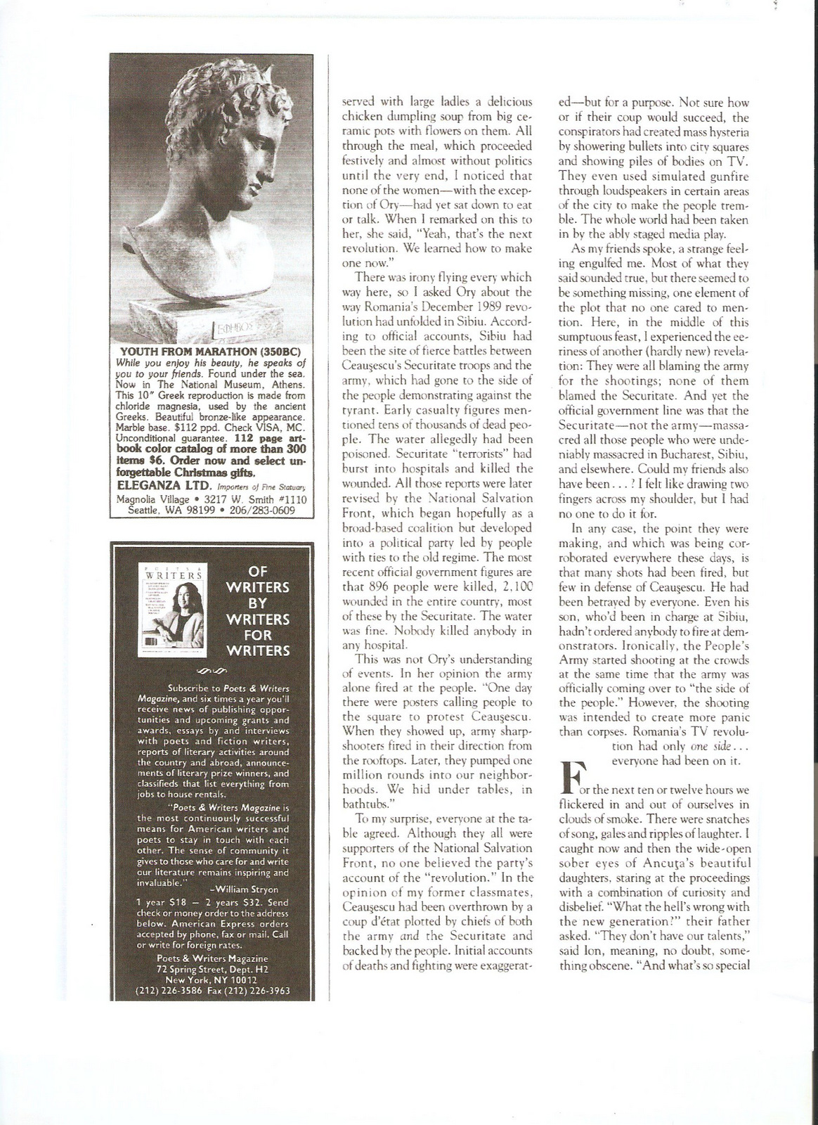 At a critical juncture in his November 1990 Harper’s Magazine article, entitled “Big Chills: My high school reunion, in Romania” (an obvious witty allusion at the time to the 1983 college-reunion film The Big Chill), pauses to explain his thought process as he hears the consensus around him regarding what happened in December 1989: