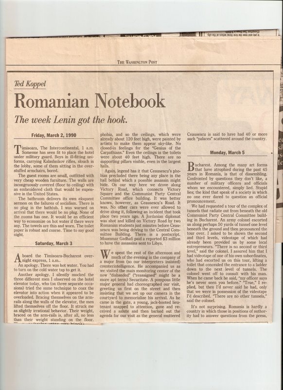 I know of no better metaphor for what has happened to research on the Romanian Revolution of December 1989 than Ted Koppel’s surreal experience in Bucharest in early 1990 recounted below.