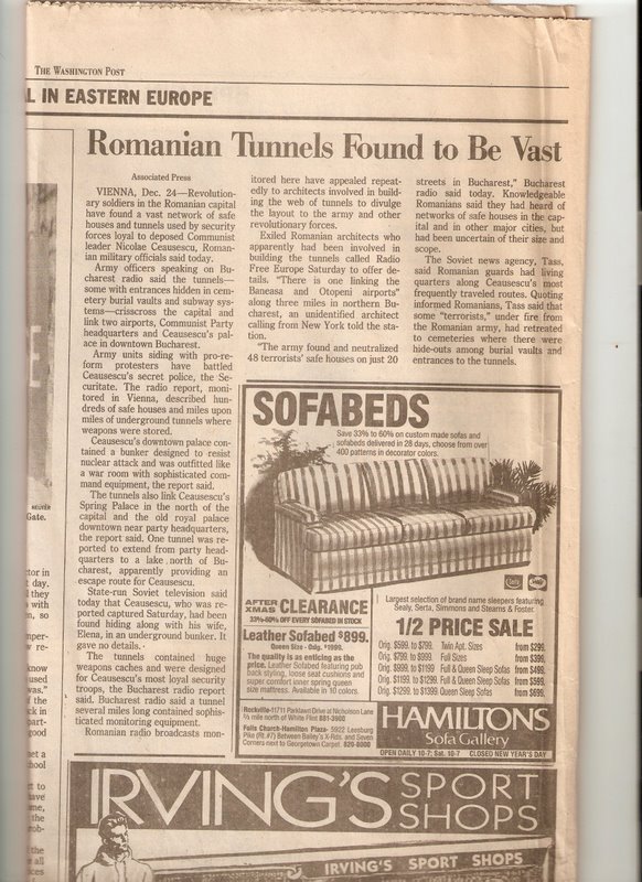 Let’s Go to the Videotape (IV) “Instead of denying access to the rest of the tunnels…the authorities now deny their very existence” (Ted Koppel, Bucharest, Romania, March 1990)