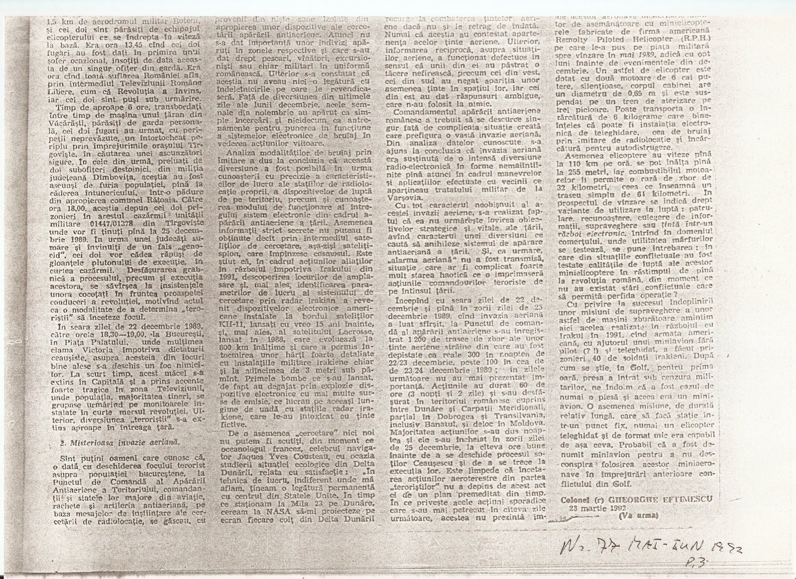 La data de 28 sau 29 decembrie 1989, col. Lovescu [?] Virgil seful U.M. 0650 mi-a raportat ca…