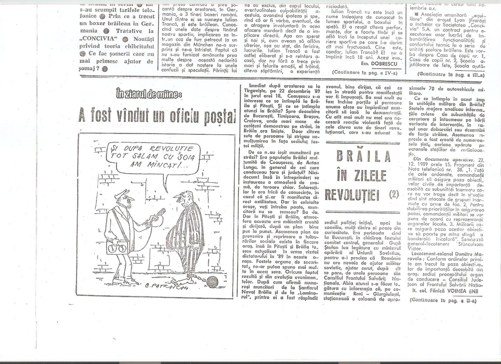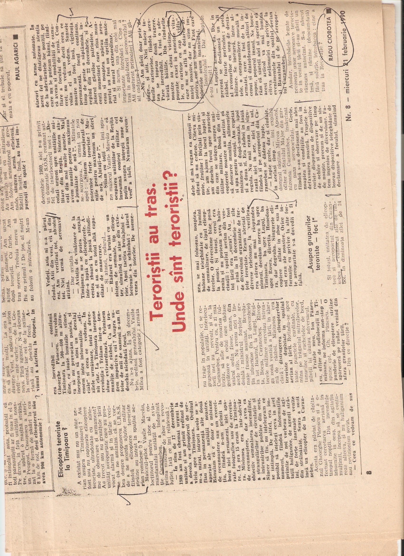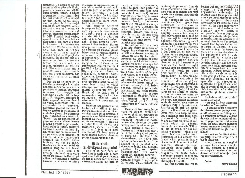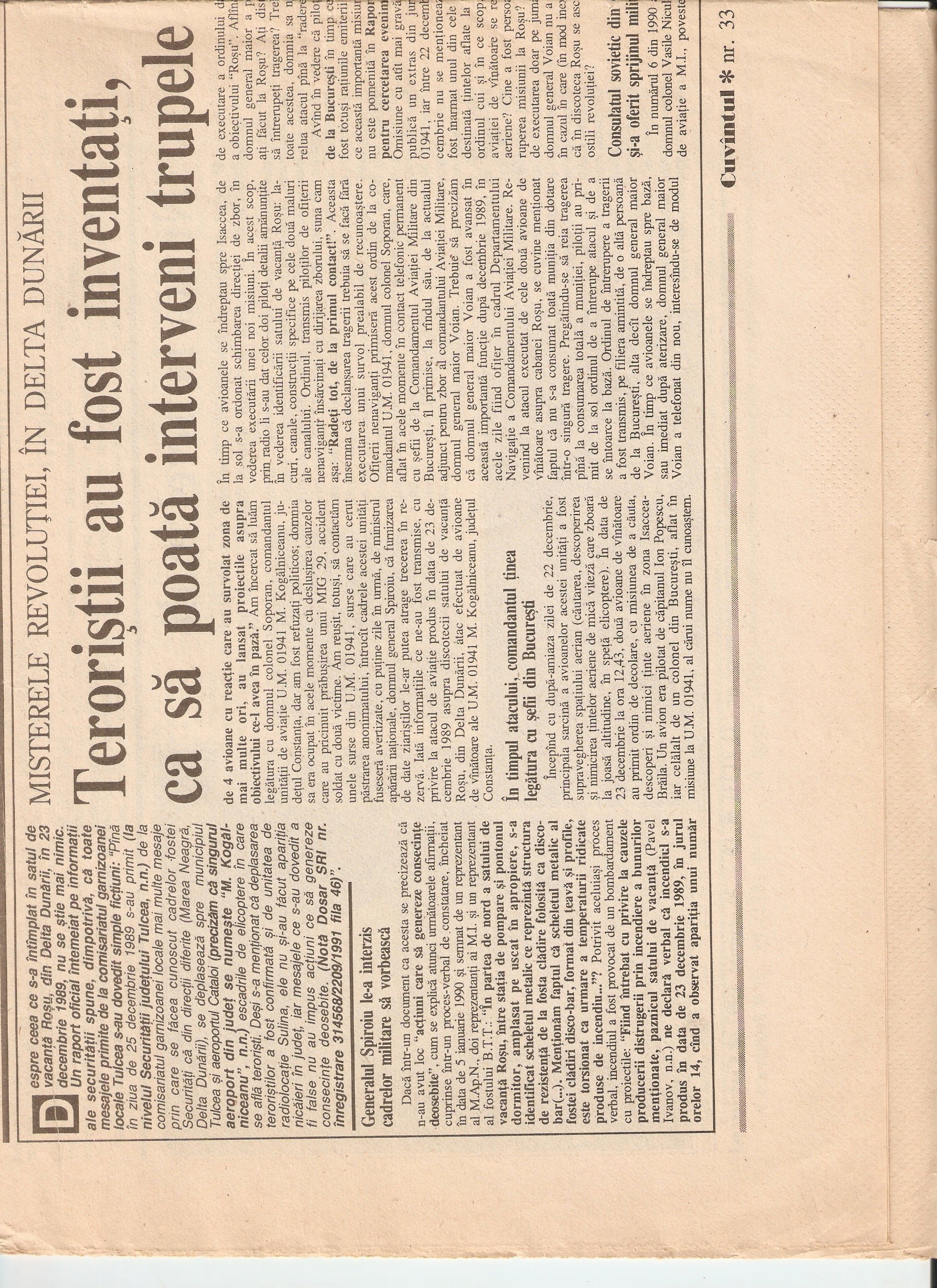 “Misterele revolutiei, la Brasov. Dupa nopti de groaza si tortura, toti teroristii sint liberi.” Adrian Socaciu, Cuvintul, nr. 1-2 ianuarie 1991image0-005