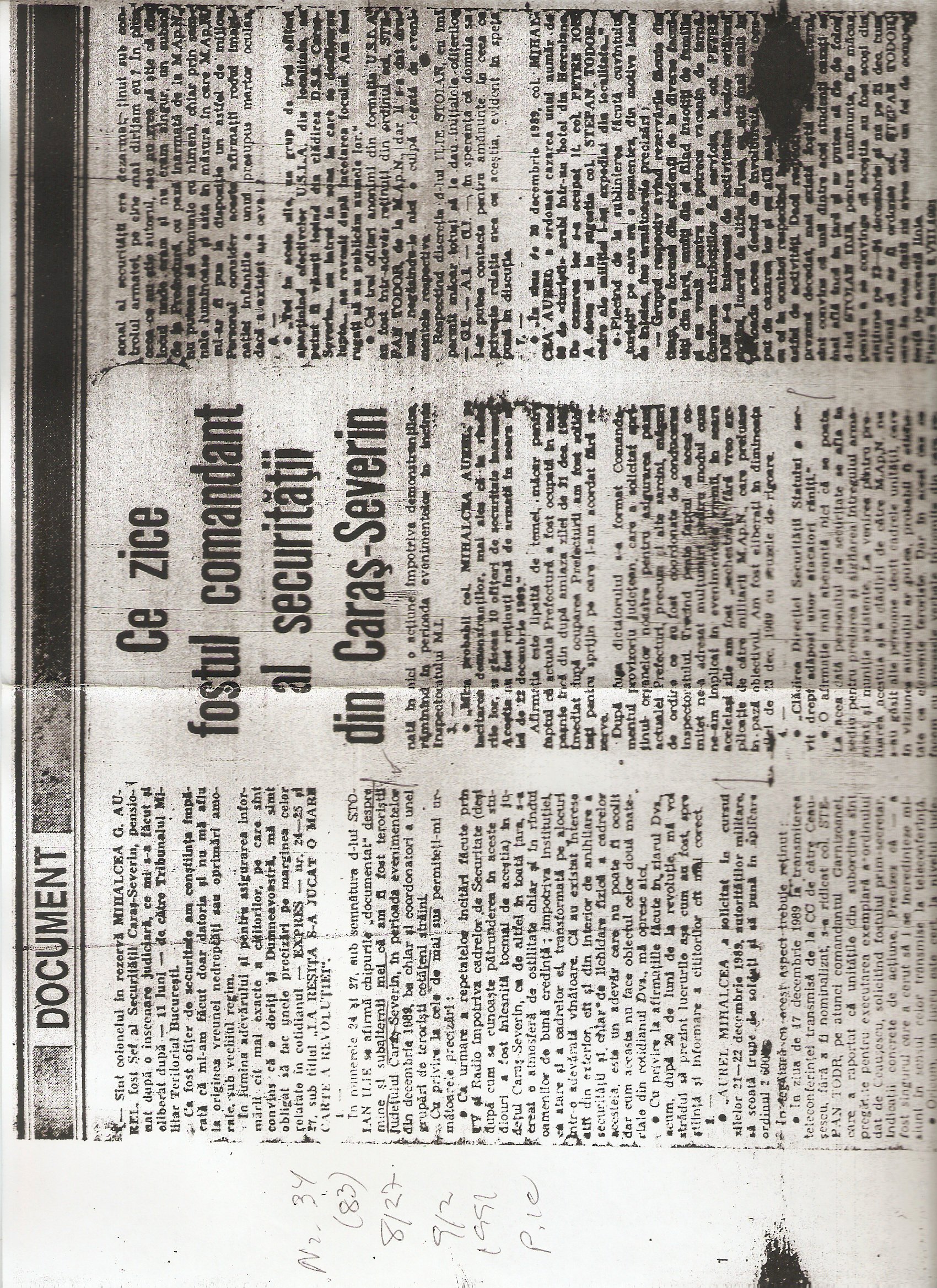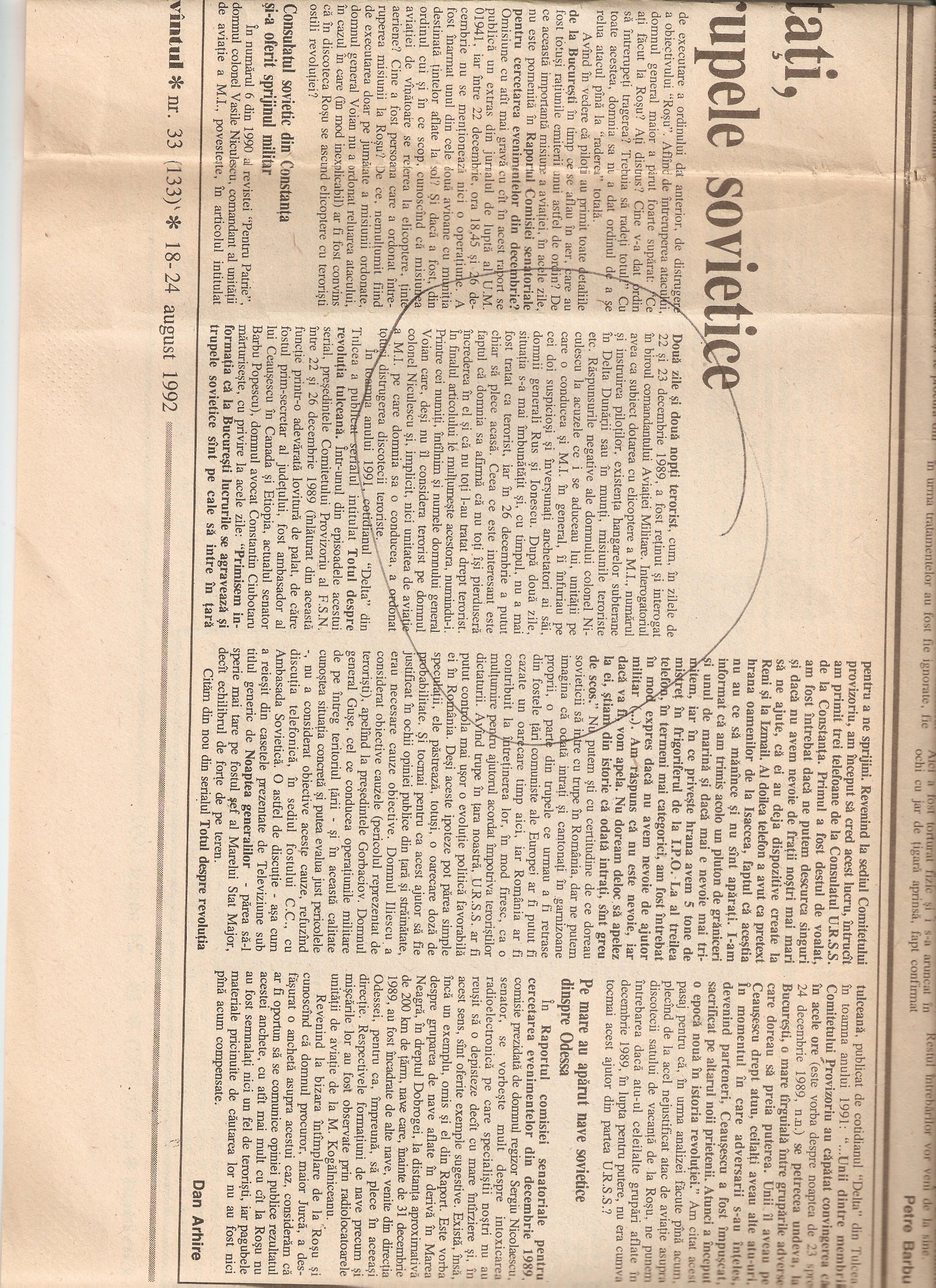 Ion Cristoiu’s Evenimentul Zilei debuted in June 1992 and was the flagship of opposition to the regime of Ion Iliescu.  In the fall of 1992 it ran a zealous campaign opposed to Iliescu’s reelection.  Here is the exculpatory letter from former Securitate General Iulian Vlad (dated 20 March 1990) that was published on 19 September 1992: