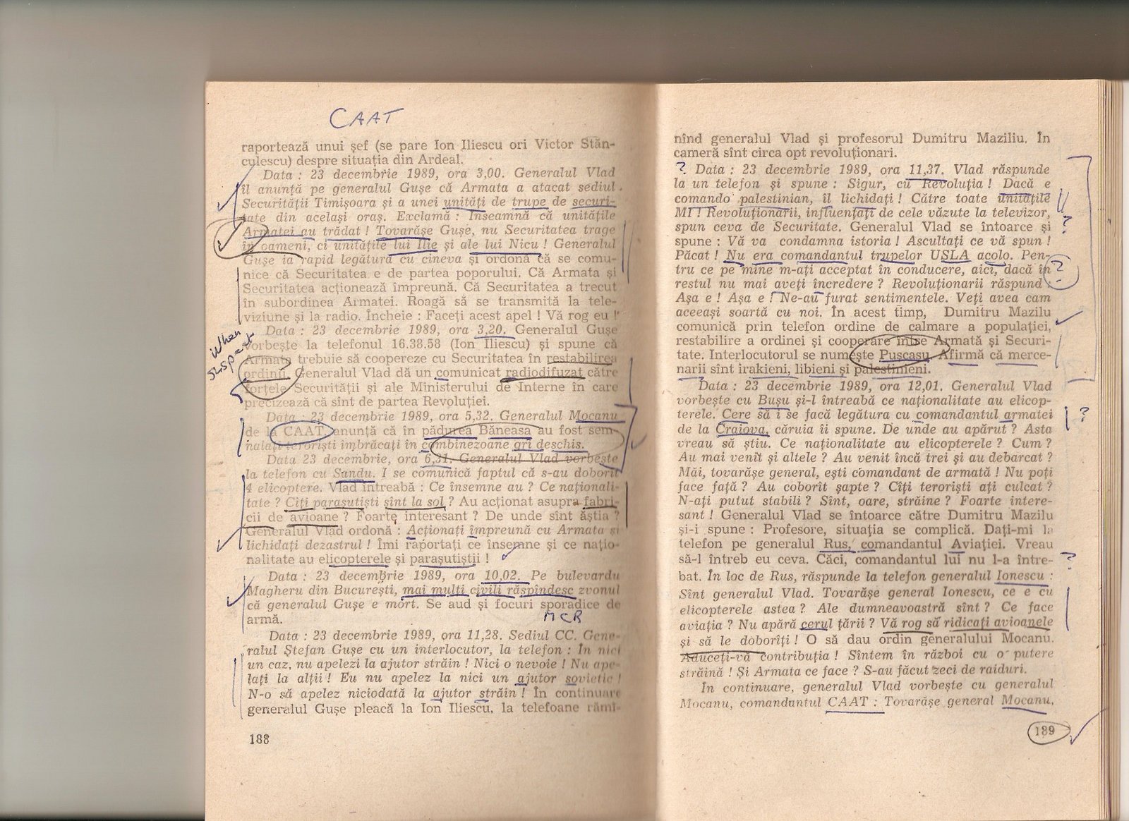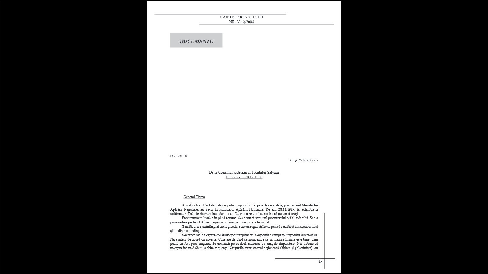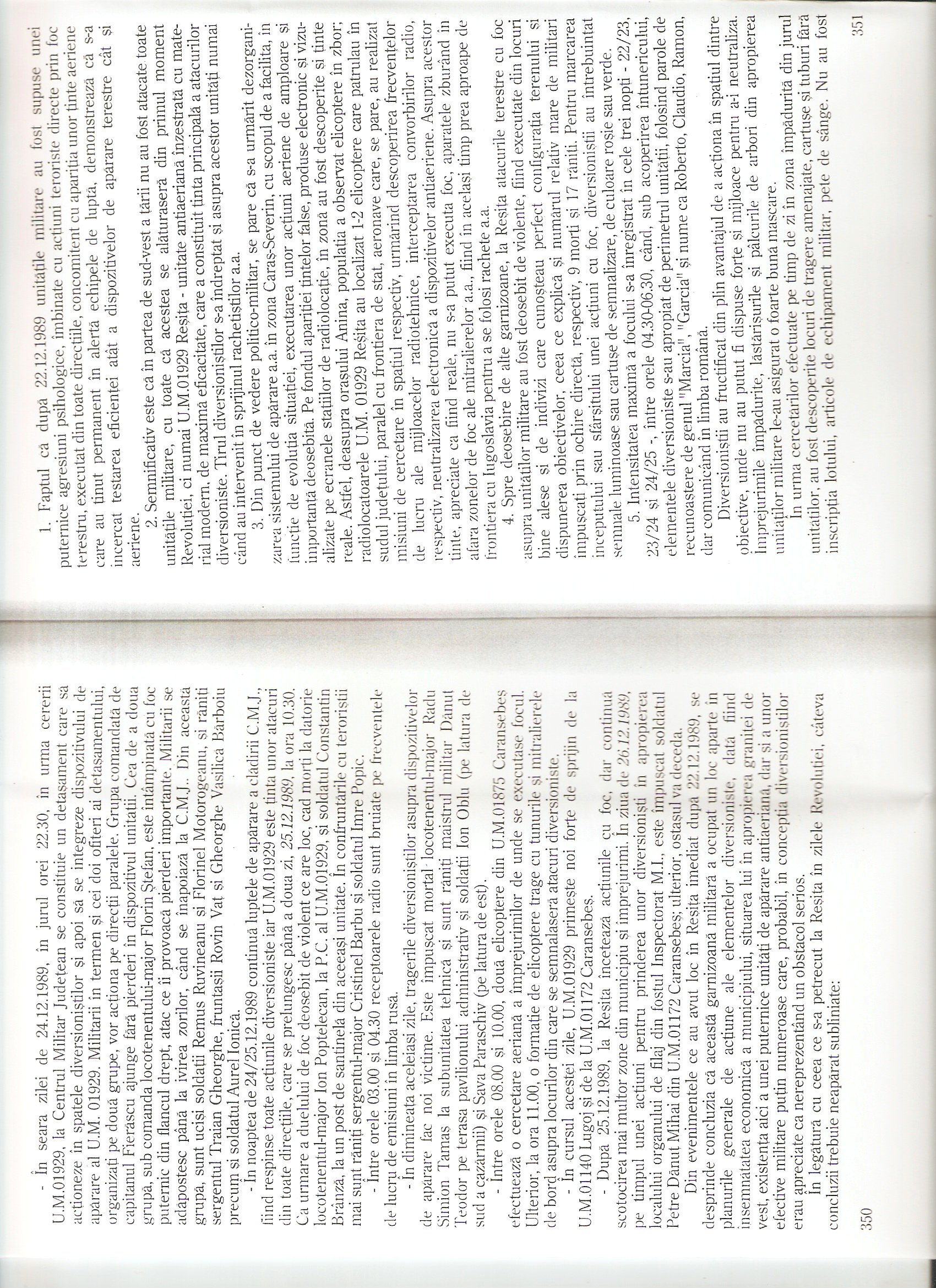 ‘The Dictatorship has fallen! The Unit’s members are in the service of the people. The Romanian Communist Party [PCR] is not disbanding! It is necessary for us to regroup in the democratic circles of the PCR—the inheritor of the noble ideas of the people of which we are a part!…Corpses were found, individuals with USLAC (Special Unit for Antiterrorist and Commando Warfare) identity cards and identifications with the 0620 stamp of the USLA, identity cards that they had no right to be in possession of when they were found…’ He instructed that the identity cards [of members of the unit] had to be turned in within 24 hours, at which time all of them would receive new ones with Defense Ministry markings.”