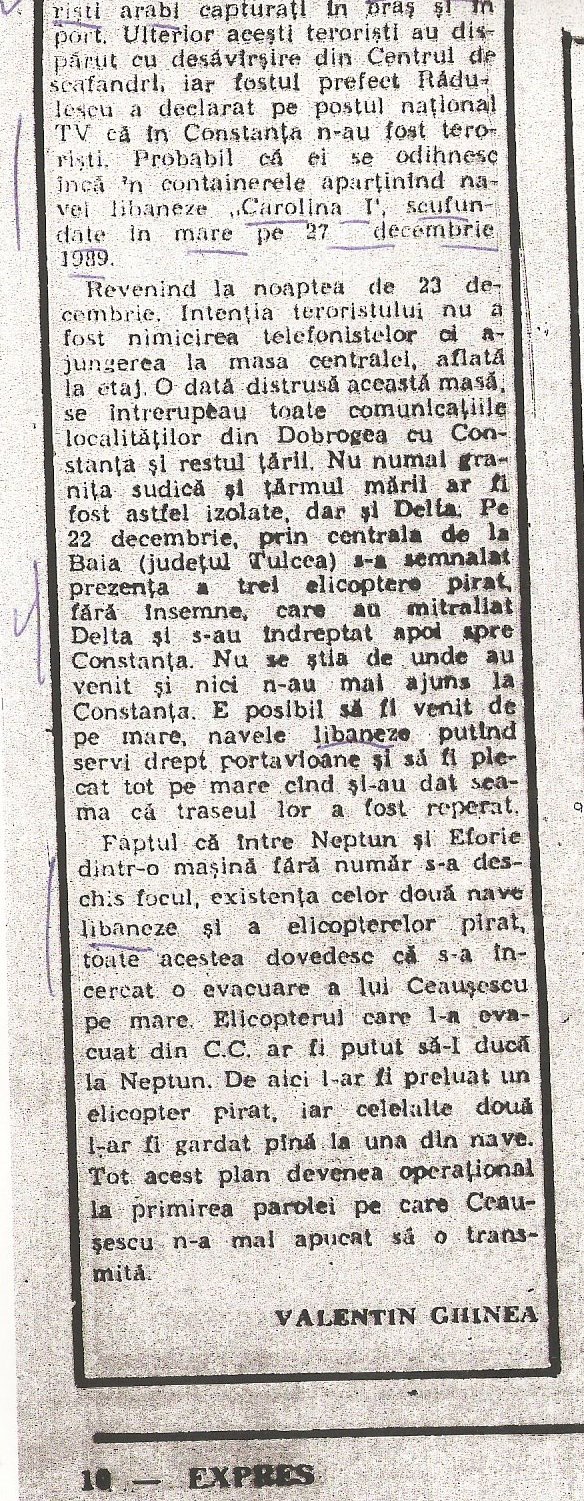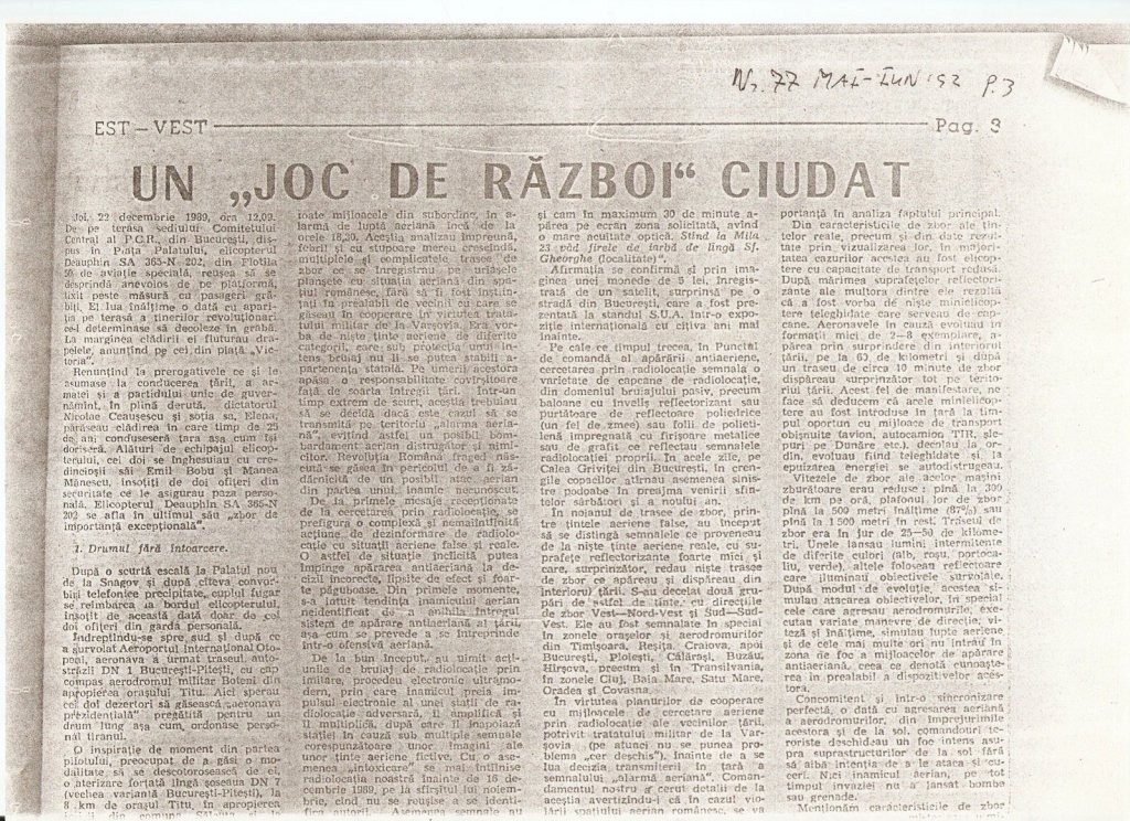 Former USLA Captain Marian Romanescu admitted to journalist Dan Badea in 1991 that the USLA (special anti-terrorist unit) had its own helicopter force, thereby substantiating the suspicion of the unidentified revolutionary that the helicopters in question were “special”/”from a special unit.”  Thus, it is abundantly clear that Vlad’s claim that the Securitate had “just three helicopters” was a bald-faced lie.