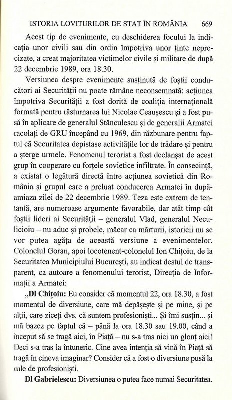 Alex Mihai Stoenescu, Istoria Loviturilor de Stat din Romania, “Revolutia din decembrie 1989–o tragedie romaneasca,” volumul 4, partea a II-a (Editura RAO: 2012), p. 669.