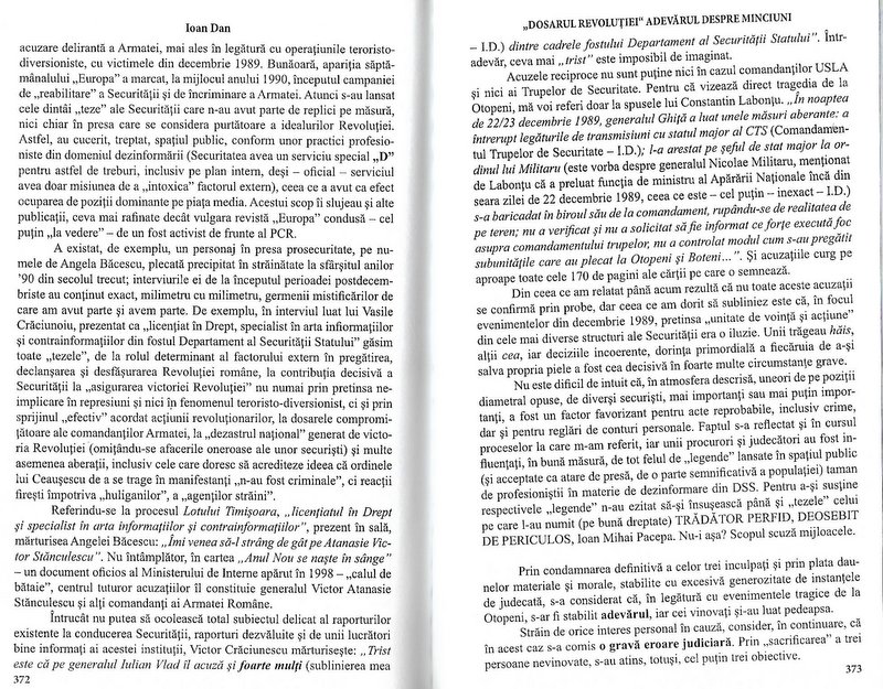 fostul securist Vasile Craciunoiu, citat in General magistrat (r) Ioan Dan, ,Dosarul Revolutiei’: Adevarul despre Minciuni (Editura BLASSCO, 2015), p. 372