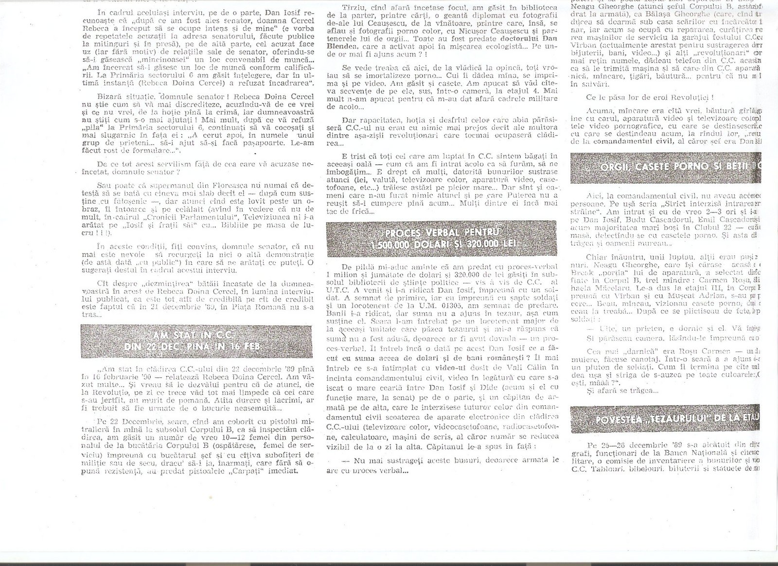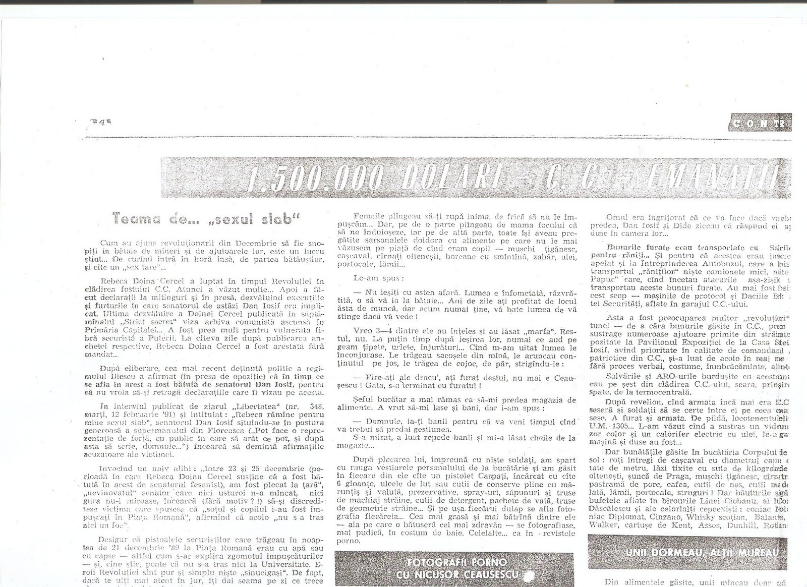 Rebeca Doina Cercel cu Traian Calin Uba, “1.500.000 dolari–C.C.–Emanatii ‘Revolutiei’” Contrast (Constanta), nr. 9 (49) 8-14 martie 1991, pp. 4-5.