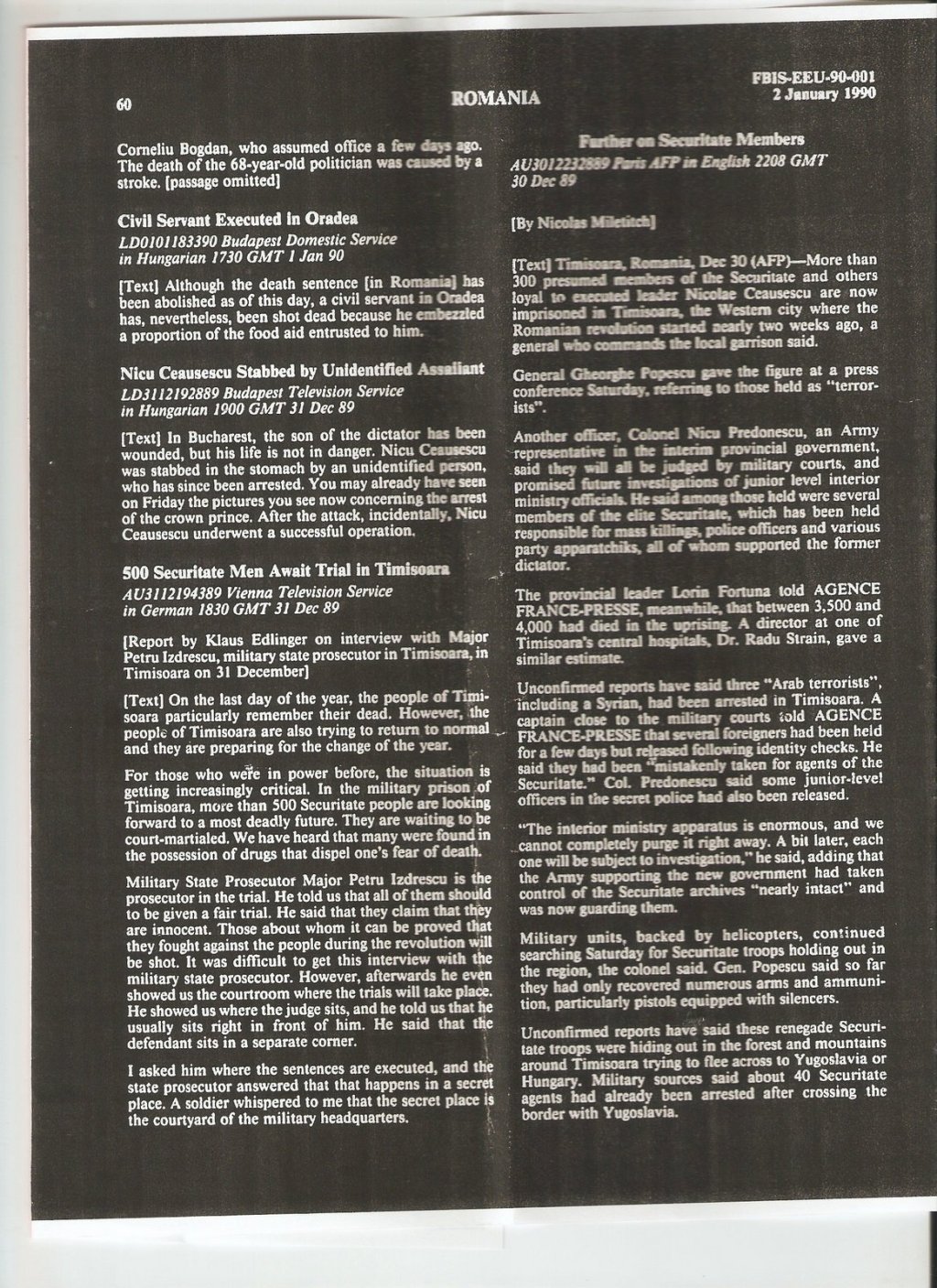Before they disappeared (FBIS EEU Romania January 1990) » image0