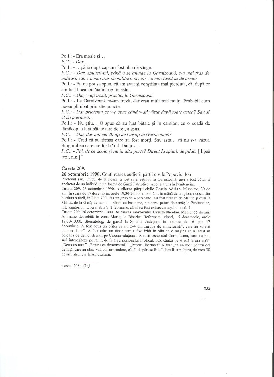 [as always, purely personal views based on purely personal research and publications over the past two decades] Thanks to Miodrag Milin (and ASOCIAŢIA MEMORIALUL REVOLUŢIEI 16-22 DECEMBRIE 1989, TIMIŞOARA), the tapes of the Timisoara trials of 1990-1991 have been transcribed and made available to the public. These transcripts are highly valuable for the researcher of the December 1989 Romanian Revolution. To my knowledge, much of this information has never made it into the public domain, and much of the most important information has definitely not. [Are these court documents available at the website of the IICCMER? Or the website of Asociatia 21 decembrie 1989? No! Thankfully, however, they are available on this site: http://www.banaterra.eu/romana/files/procesul_de_la_timisoara_volumul_IV_cuprins_0.pdf and http://www.banaterra.eu/romana/procesul-de-la-timisoara-1990-1991-vol-v ] The following are from Volumes IV and V.] Emblematic of post-Ceausescu Romania and the legacy of disinformation spread by the former Securitate and Ceausescu’s apologists in the 1990s (to understand, see https://atomic-temporary-3899751.wpcomstaging.com/the-uses-of-absurdity-romania-1989-1999/) was the July 2008 public release of declassified excerpts of Romanian Army documents from immediately after the December 1989 Revolution. The focus of journalists and forumisti was not upon researching to see if there was independent, confirmatory information to substantiate/corroborate the details contained in the Army documents, but upon how the documents were being used (thereby ignoring the possibility that two things were true at the same time: the documents were being used, but they also revealed the truth–which is exactly what was happening). Thus was lost yet another critical opportunity for understanding December 1989 as the testimonies from the Timisoara trials make clear. ADEVĂRUL DESPRE REVOLUŢIA DE LA TIMIŞOARAAutor: Roxana Dumitru Trupele de Miliţie, Securitatea în civil şi luptători ai USLA au acţionat, alături de militari, pentru oprirea manifestaţiilor de la Timişoara, din decembrie 1989. Informaţiile apar în “Jurnalul de luptă” al Ministerului Apărării, din perioada 16-22 decembrie. Acesta a fost azi făcut public de Înalta Curte de Casaţie şi Justiţie. Documentul a fost desecretizat în urma solicitării avocaţilor din dosarul în care generalii Victor Atanasie Stănculescu şi Mihai Chiţac sunt acuzaţi de omor deosebit de grav, respectiv tentativă de omor deosebit de grav. Din documentul desecretizat azi, care conţine descrierea pe ore a evenimentelor petrecute la Revoluţia de pe Bega, reiese că trupe ale Securităţii, Miliţiei şi Unităţii Speciale de Luptă Antiterorism s-au infiltrat printre soldaţi. Aceşti militari ar fi tras asupra manifestanţilor, în special în momentele în care armata trăgea focuri de avertizare. Un raport de informare al Ministerului Apărării Naţionale, întocmit de comandantul Marcu Dumitru din Arad, arată că acesta a semnalat “efective militare necunoscute” printre militarii săi. “Între efectivele noastre au fost semnalate efective de militari necunoscuţi care aveau în dotare lanterne foarte puternice şi care îndreptau fascicolul luminos spre balcoane, iar după aceea trăgeau asupra acestora – cazuri semnalate pe calea Girocului – îmbrăcaţi civili. Au fost semnalate efective ale Securităţii şi Miliţie în toate punctele unde am avut efective. Nu cunoaştem misiunile pe care le aveau de îndeplinit aceşti indivizi“, raporta comandantul.