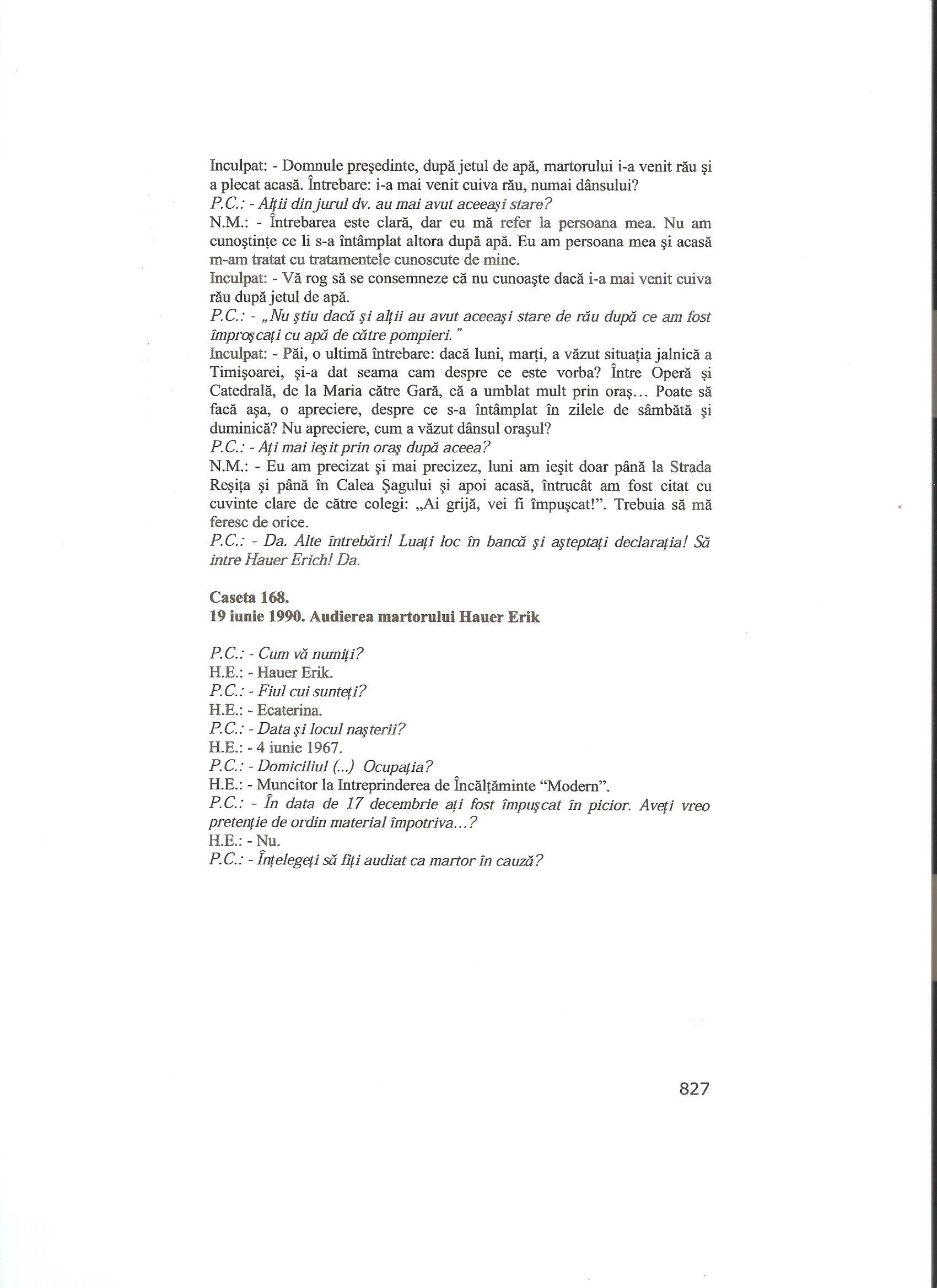 EVZ.ro Erik Hauer Cristian Rusu: Pe 8 ianuarie audiat de procuror: …A venit o masina Dacia 1300 combi, culoare glabui, au coborat trei indivizi in civil, care au mers in spatele cordonului si au ordonat foc. S-a tras cu gloante “dum-dum.” Cristian Rusu: “Si de la baietii cu care am fost internat in spital, si de-acolo cu care m-am intilnit, si de la care au mai venit pe la mine pe la spital, si de la baietii care ne pazeau, militarii, de la ei am aflat ca sunt gloante ‘dum-dum’.” What can we learn from Dosarele Revolutiei de la Timisoara (II)Posted by romanianrevolutionofdecember1989 on December 19, 2012 [Documentary evidence in support of the publication entitled: Bullets, Lies, and Videotape: The Amazing, Disappearing Counter-Revolution of December 1989 ] On 1 December 2012, Doru Teodor Maries and Asociatia 21 decembrie 1989 made images of many of the official files investigating the events of December 1989 in Timisoara available on the Internet at http://dosarelerevolutiei.ro/ . Among the copies available are testimonies from victims of the repression of the communist regime of Nicolae Ceausescu, witnesses of the repression, relatives of the victims of the repression, and members of regime forces that either participated in the repression or were witnesses to it. These documents allow researchers the ability to confirm or infirm claims made in the Romanian media or accounts published since December 1989. Doru Sciadei’s statement, 27 January 1990 “O persoana dintre militari a luminat cu o lanterna, iar altii 3-4 p(ersoane?) au tras (d)in casa (scarilor)” [pagina 1 e greu de citit]