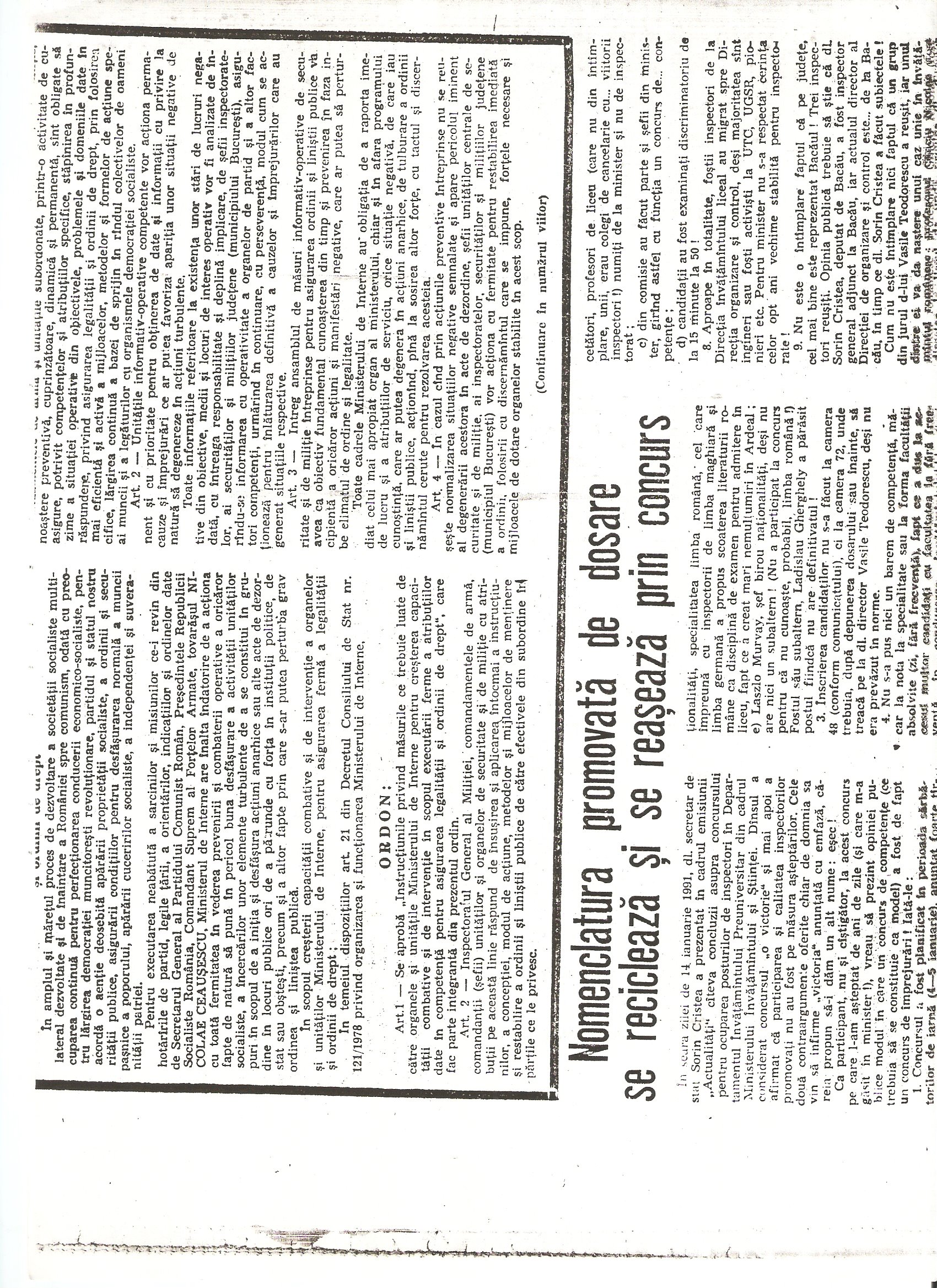 […] Facsimilele cu articolele de ziar prezentînd conţinutul ordinului se pot vedea pe saitul domnului profesor Richard Andrew Hall (linc) şi le prezint şi eu mai […]