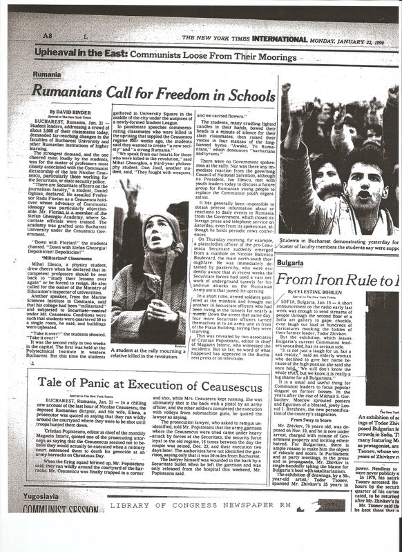 This was revealed by two associates of Cristian Popisteanu, editor in chief of Magazin Istoric, who witnessed the incidents. But so far, no word of what happened has appeared in the Bucharest press or on television.