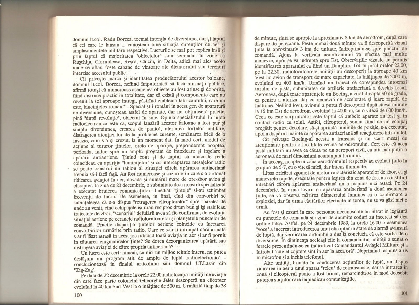 A fost intrebarea fundamental acare mi-am pus-o mie si unor personalitati militare din apararea anti-aeriana care raspundeau de transmiterea acestor semnale si mi s-a raspuns lapidar: “Din moment ce apareau din interior si dispareau tot in interior, nu era cazul sa se dea alarma aeriana.” In plus, inca din noaptea de 22/23 decembrie 1989, comandamentul a dedus scopul diversionist si nu nimicitor al acestui actiuni aeriane, astfel ca a interzis si combatarea tintelor cu rachete anteaeriene.