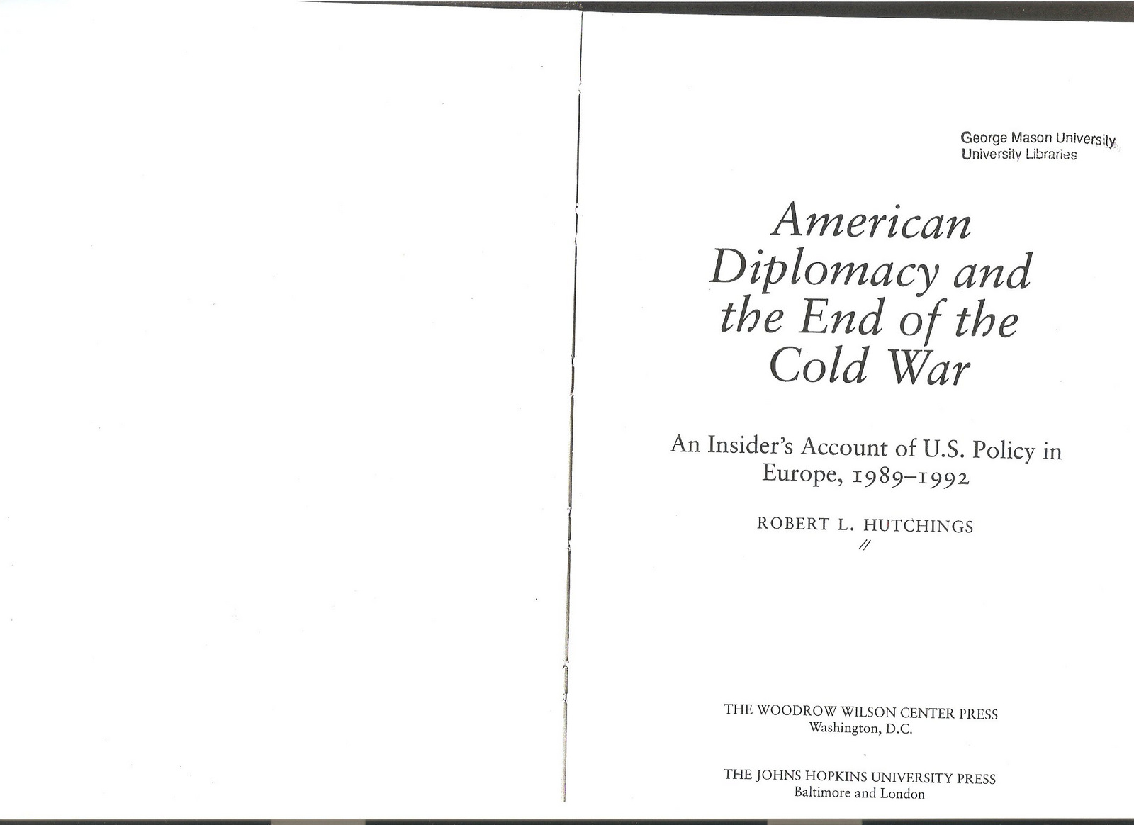 Robert L. Hutchings, National Security Council Director for European Affairs, 1989-1992, American Diplomacy and the End of the Cold War (1997)