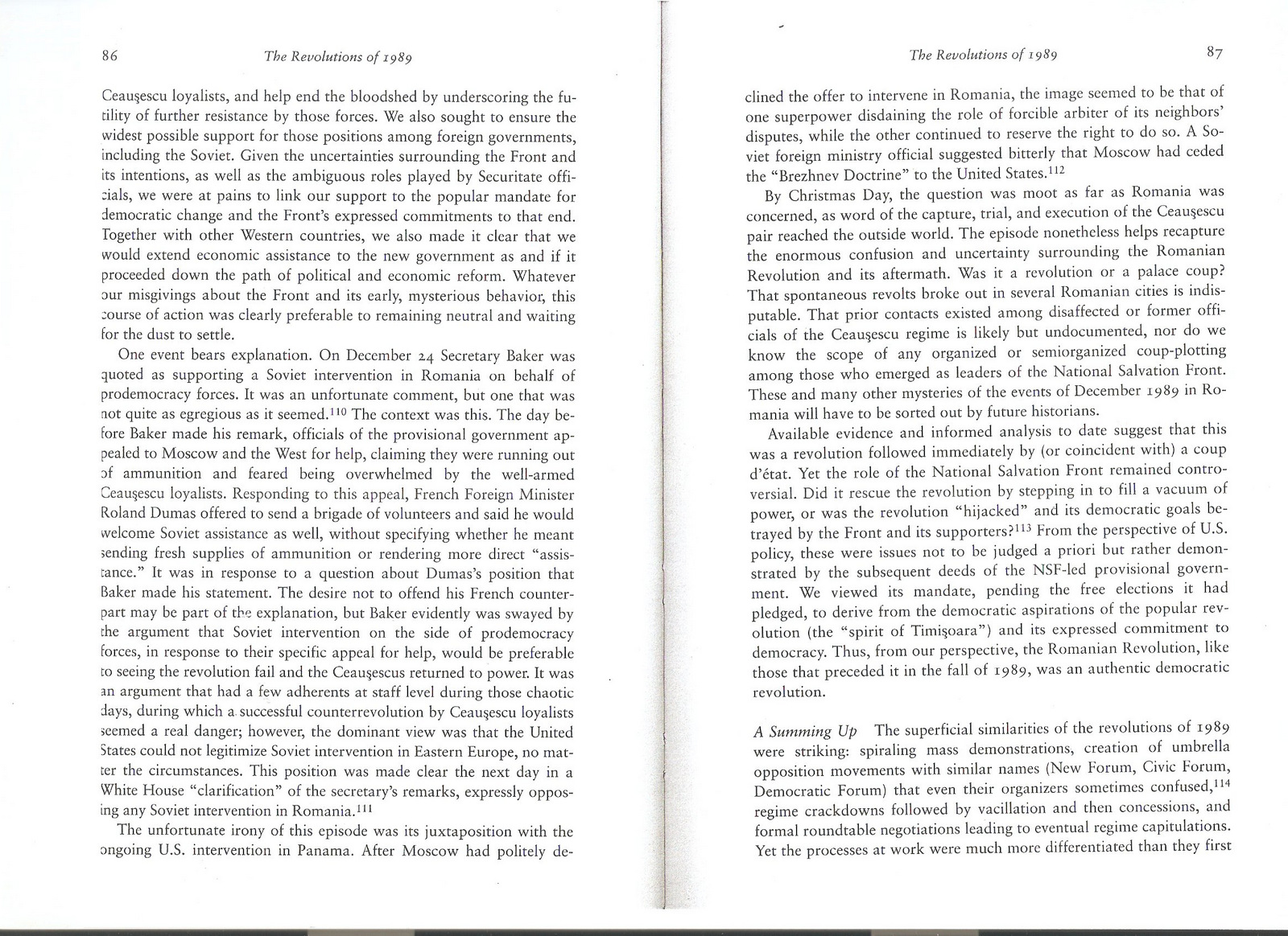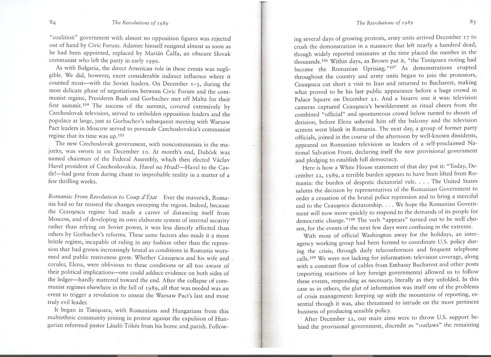 110. …With Moscow as with others [“Bonn, London, Paris, and other capitals”], there was a broadly shared desire to see Ceausescu loyalists defeated, the bloodshed ended, and the democratic “spirit of Timisoara” vindicated