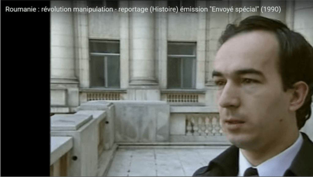 From approximately min. 12:55-13:55, the just “a simple citizen,” Nica Leon, who ‘got too close’ to those in power during these days (Iliescu, Roman, Voican, Militaru), i.e. suggesting he saw too much, that they arrested him for a week. He talks of how we was in arrest with many young people, Securitate members, saw wounded and dead, who died he says, due to “the confusion” “unii au tras in altii” (some shot in the others, military in civilians, civilians in military)…and he didn’t see a single terrorist or special weapons (“je n’ai pas vu aucun terorist, aucune arme speciale”)…in other words, the former Securitate litany of lies…little did French TV realize the smecher they were interviewing…