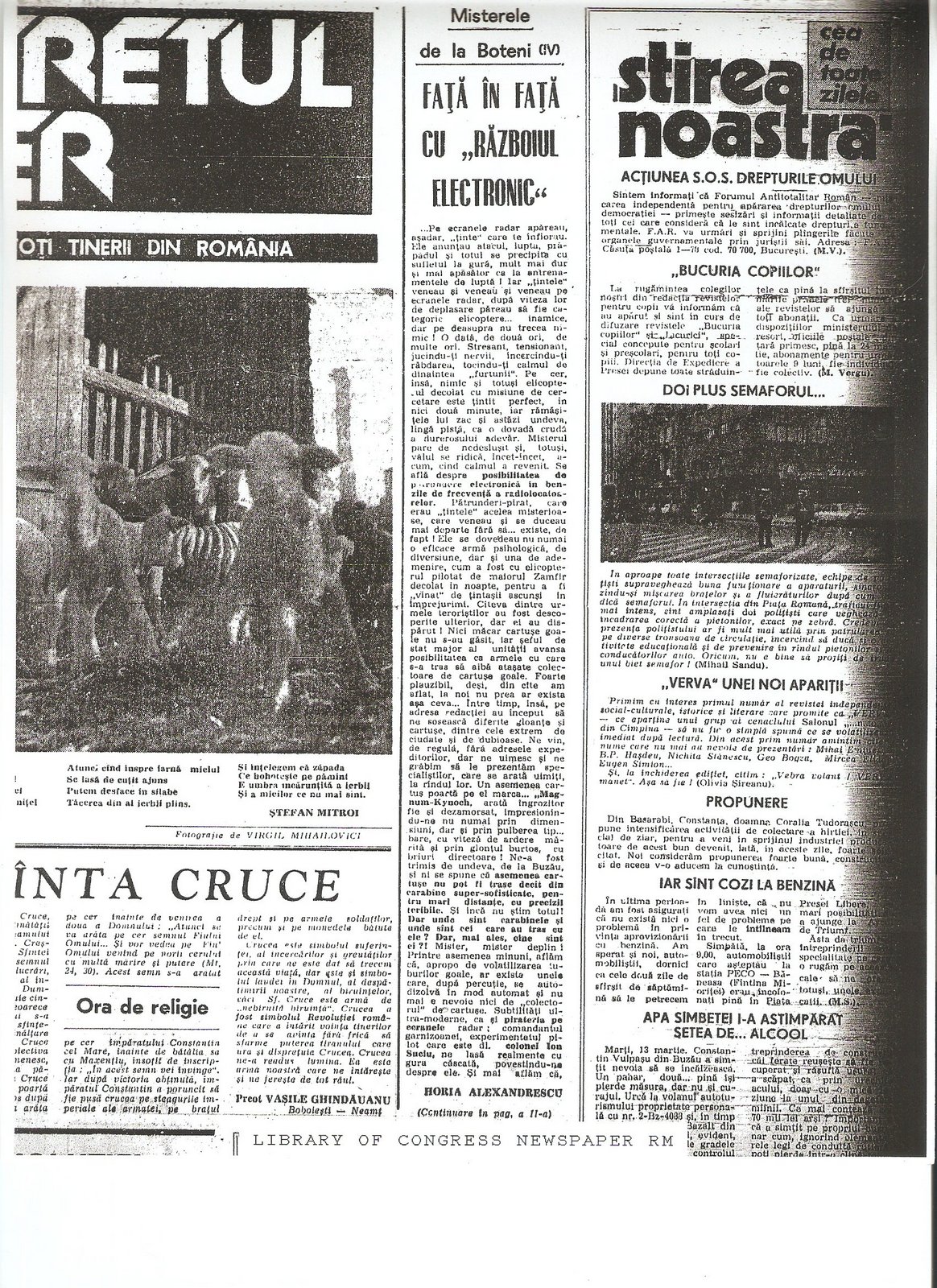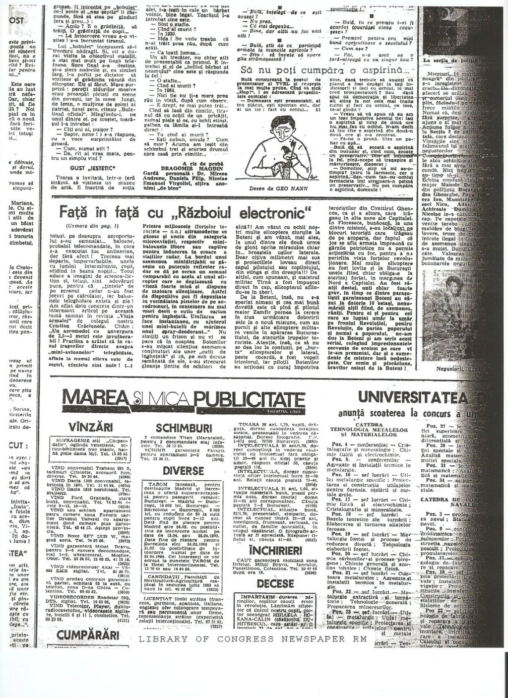 Horia Alexandrescu, “Misterele de la Boteni (IV): Fata in fata cu ‘Razboiul Electronic’,” Tineretul Liber, 18 martie 1990.