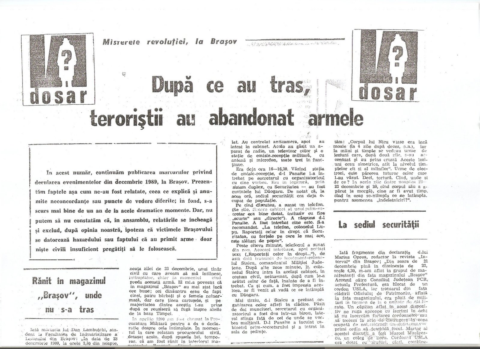 “Who fired from the attics of Sibiu on 21-22 December 1989? Who are the so-called terrorists? Where are their guns with scopes and unmistakable cadence? Silence on all fronts:…