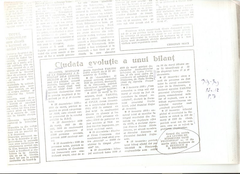 “Ciudata evolutie a unui bilant,” Zig-Zag nr. 12 (1990), p. 7.