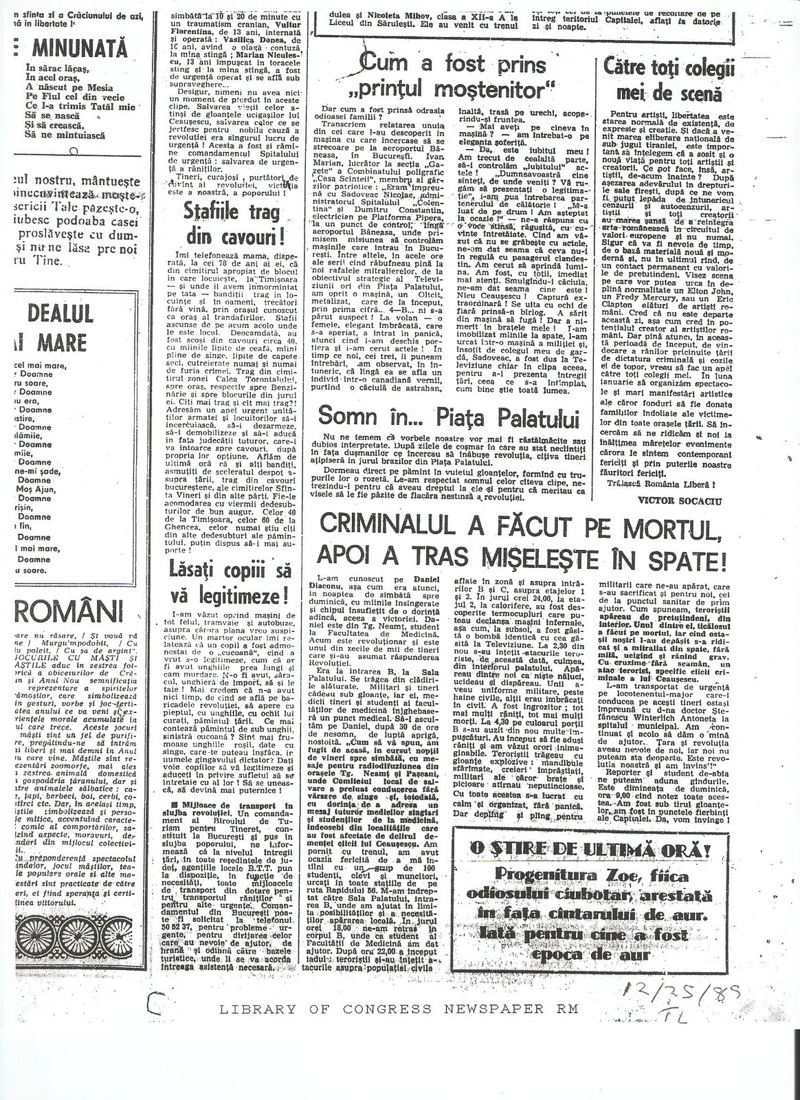 “…[T]he Military Prosecutor gave me two variants. In the first part of the inquest, they [the flight’s passengers] were from the Interior Ministry. Later, however, in the second half of the investigation, when the USLA and those from the Interior Ministry began, so-to-speak, to pass ‘into the shadows,’ — after which one no longer heard anything of them — they [the passengers] turned out to be simple citizens…” (interview with Nicu Ceausescu in “Zig-Zag,” no. 20, 21-27 August 1990).