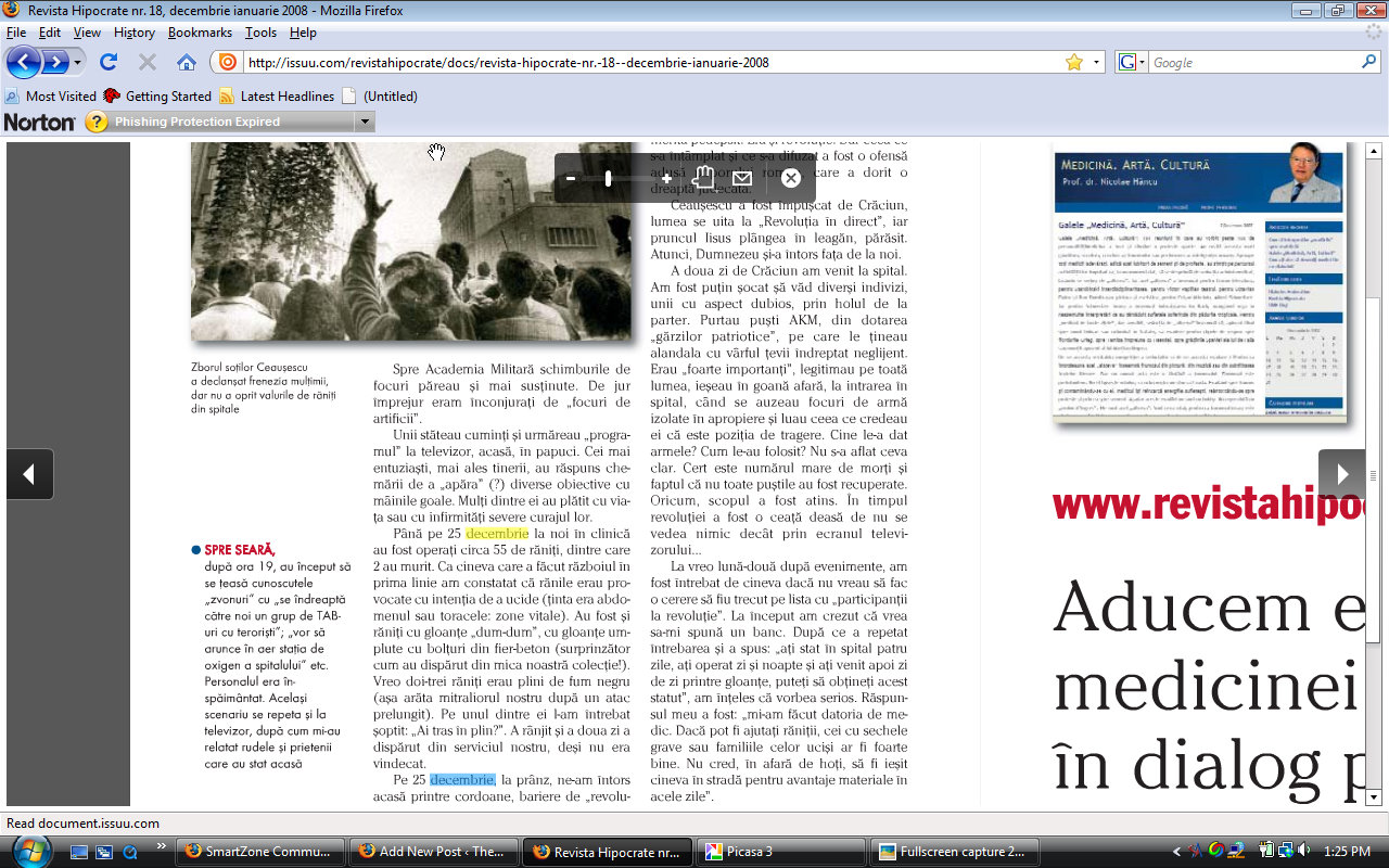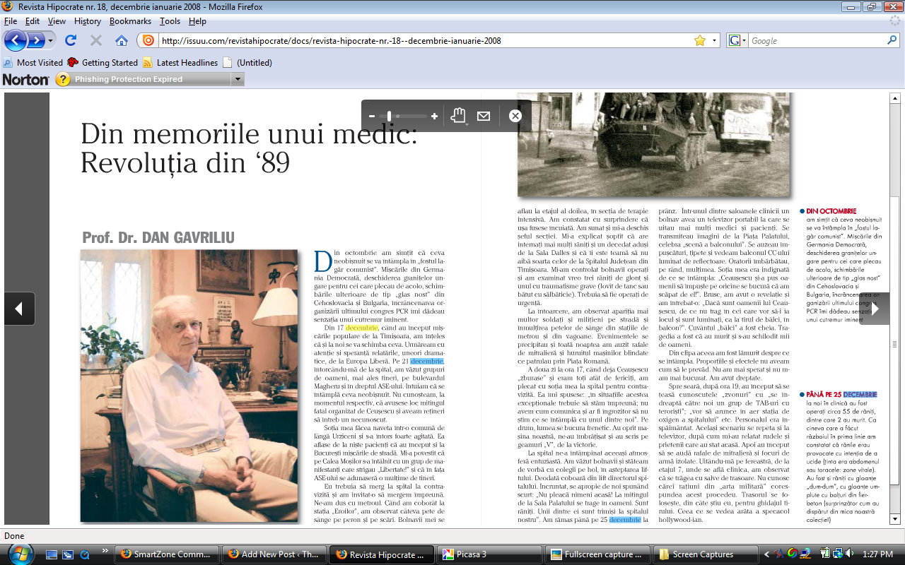 [9] Dr. Professor Nicolae Constantinescu, interview by Romulus Cristea, “”Nici acum nu-mi dau seama cum am putut sa operez nonstop timp de trei zile,” Romania Libera, 20 December 2006, online edition.