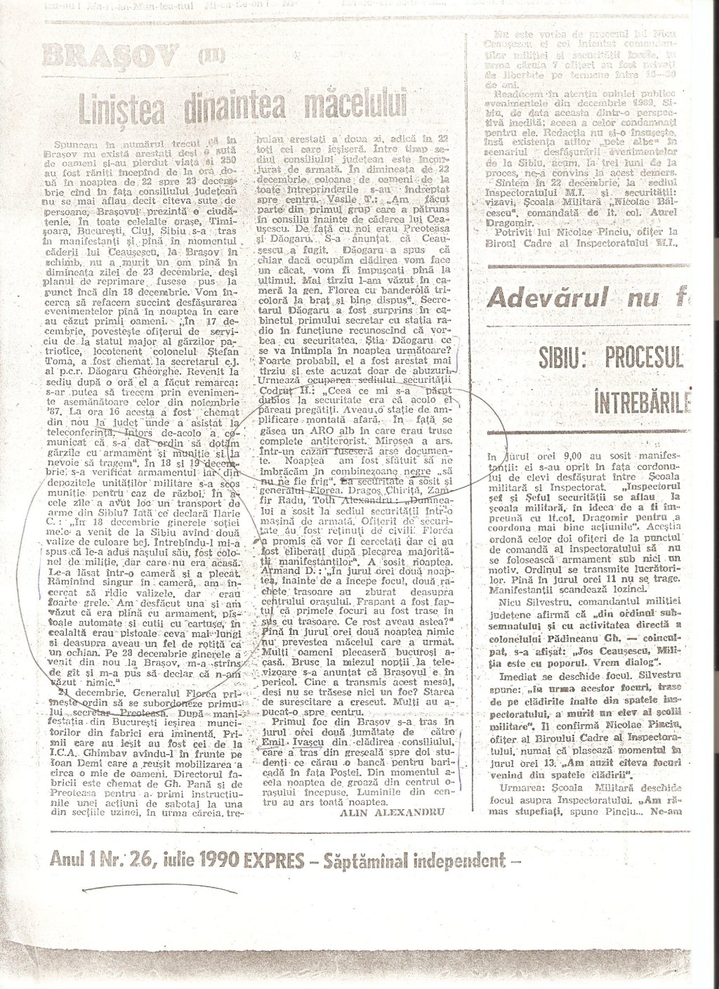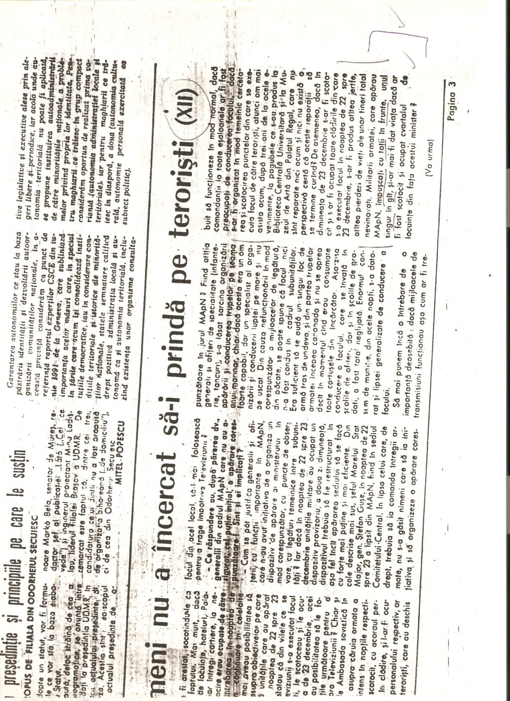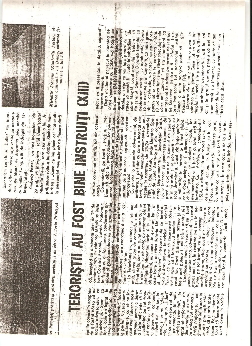 (Maior Mihai Floca si Capitan Victor Stoica, “Unde sint teroristii? PE STRADA, PRINTRE NOI (II), Armata Poporului, 27 iunie 1990, p. 3)